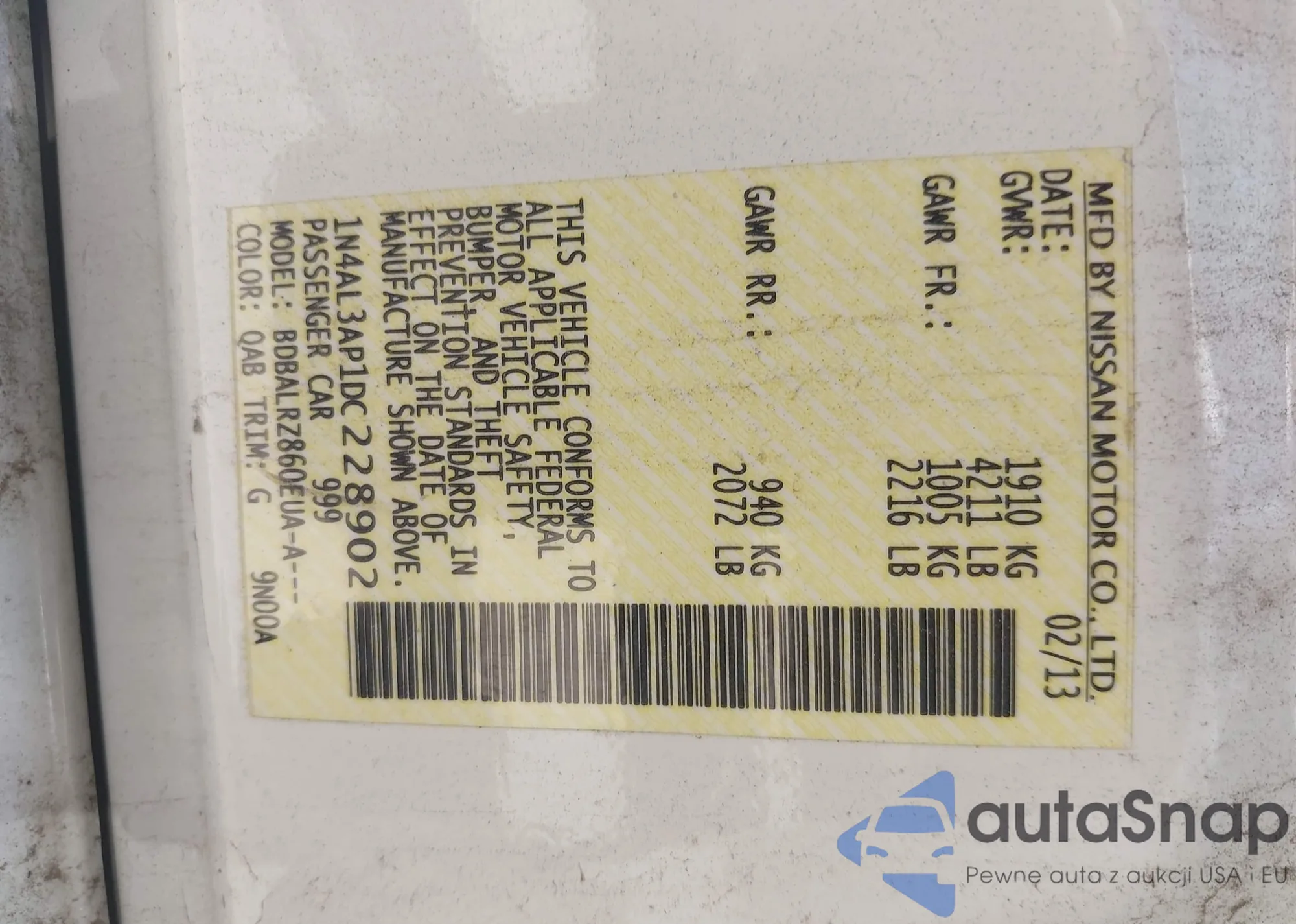 LOT: 42723854 VIN: 1N4AL3AP9FN901281