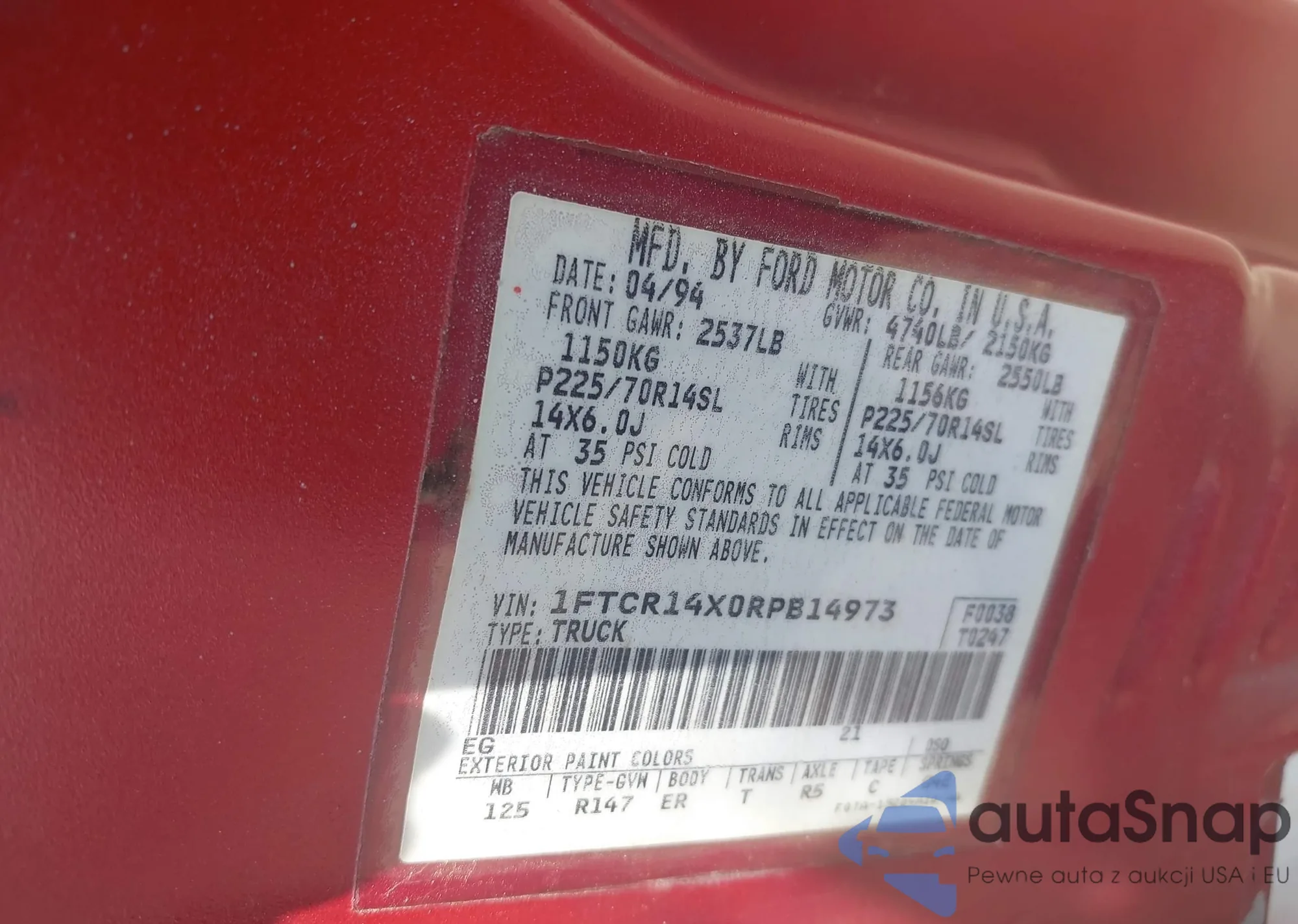 • VIN 1FTCR14X0RPB14973