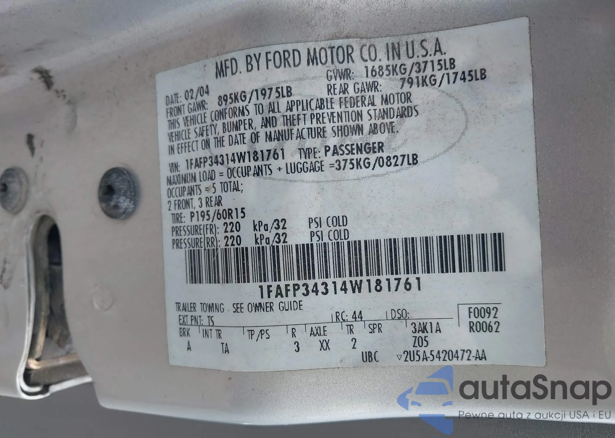 LOT: 42409764 VIN: 1FAFP34314W181761