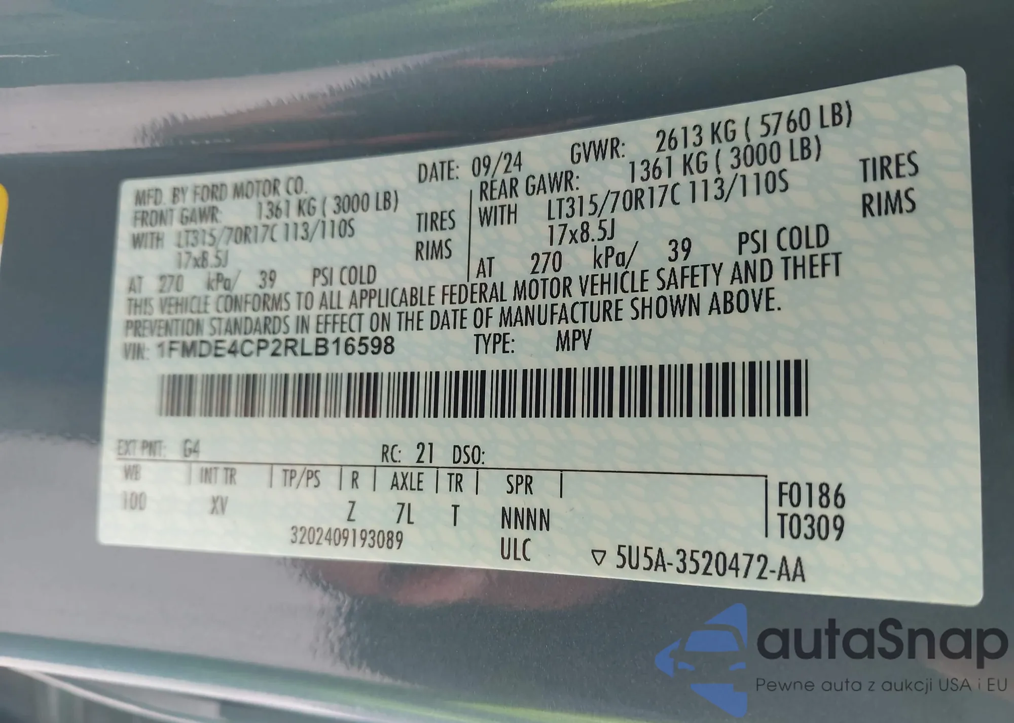 LOT: 42967685 VIN: 1FMDE4CP2RLB16598