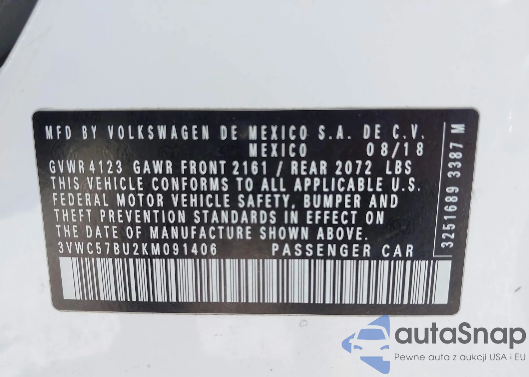 • VIN 3VWC57BU2KM091406