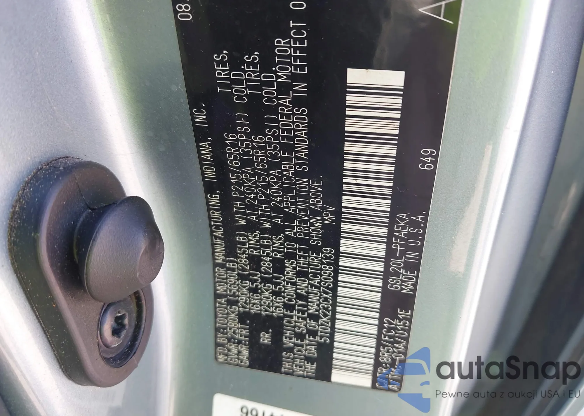LOT: 43023780 VIN: 5TDZK23CX7S098139