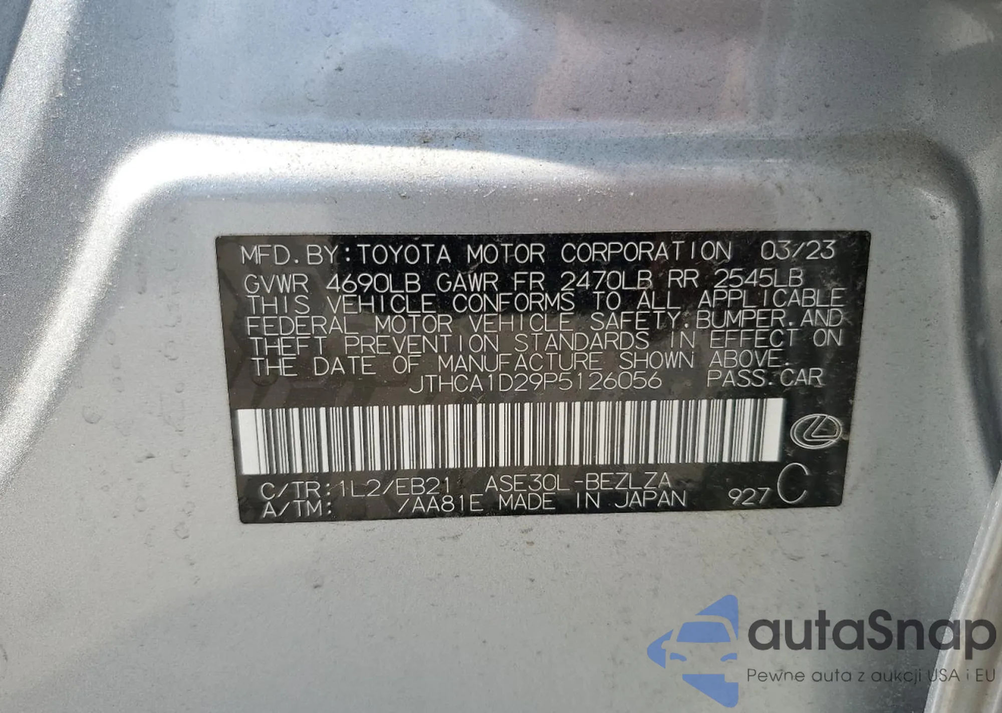 LOT: 67801135 VIN: JTHCA1D29P5126056