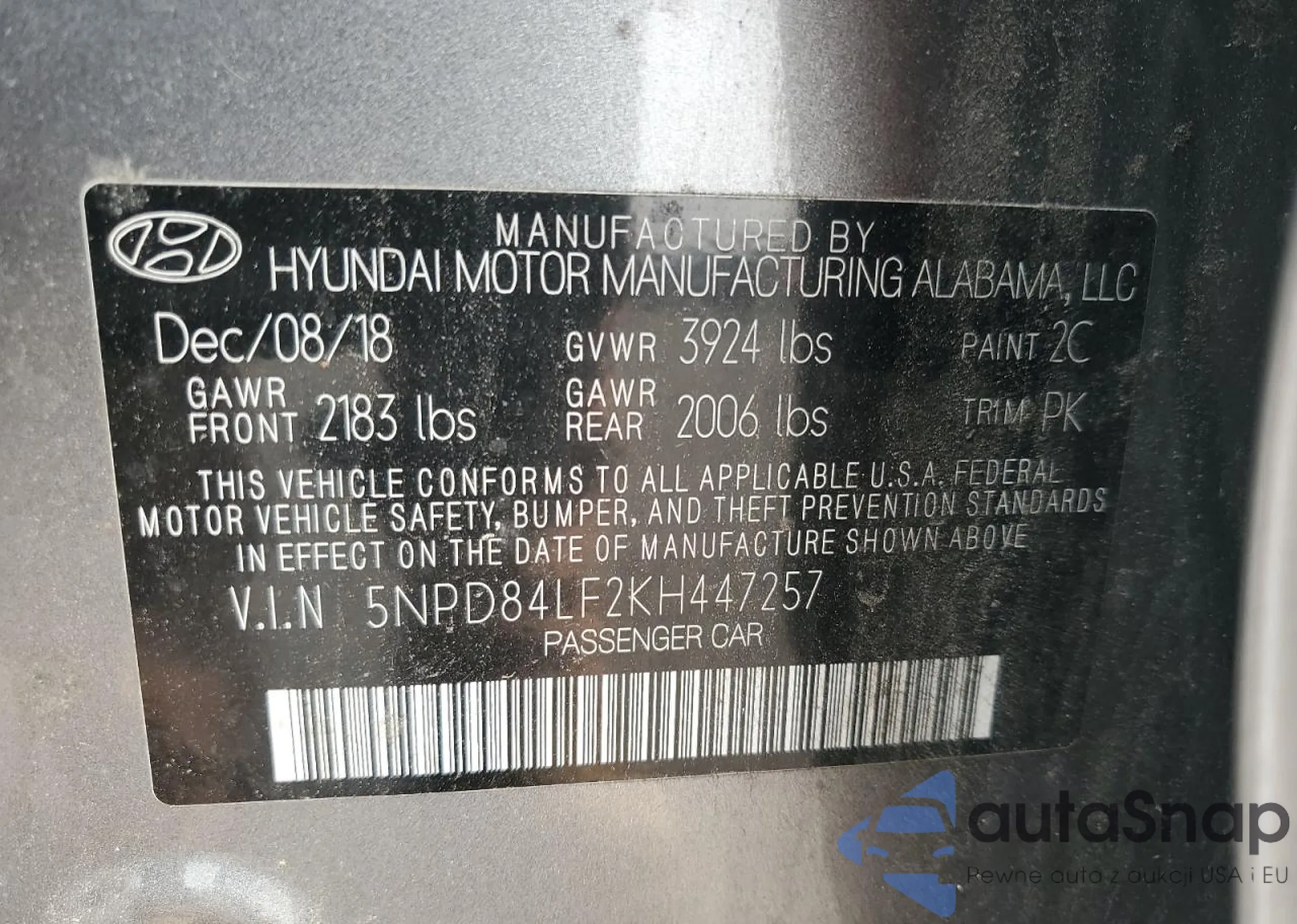 • VIN 5NPD84LF2KH447257
