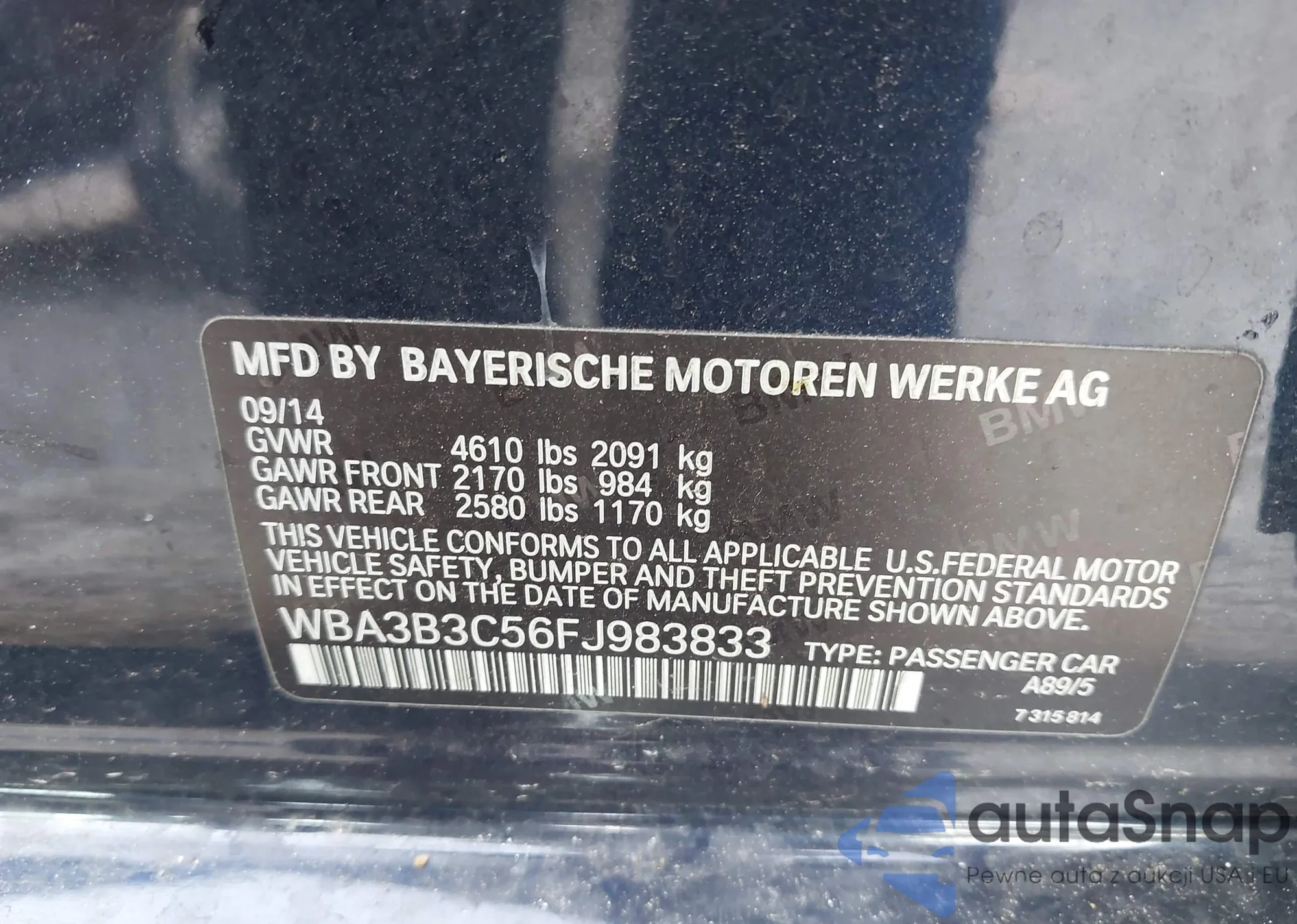 • VIN WBA3B3C56FJ983833