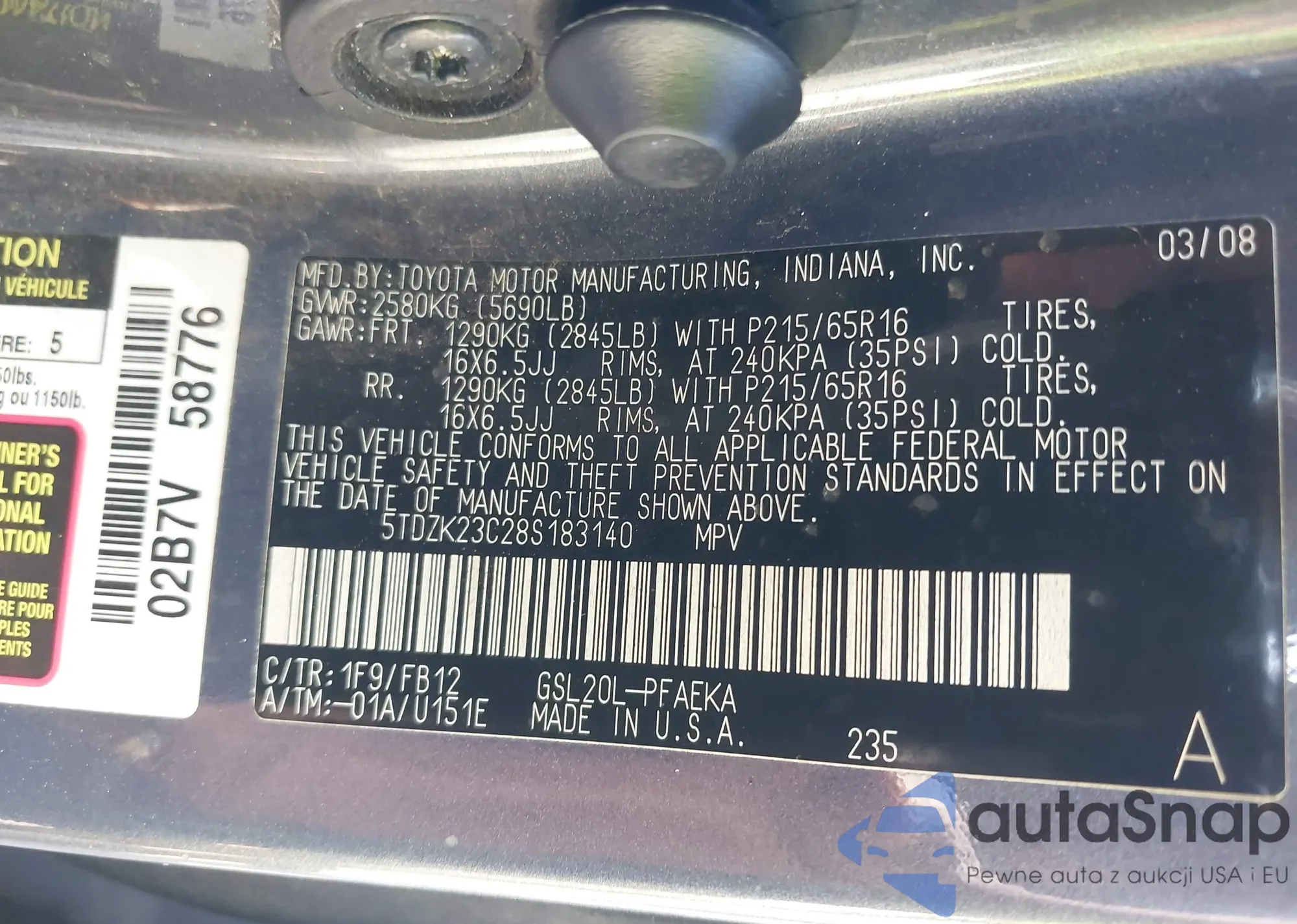 • VIN 4T3BA3BB8FU068217