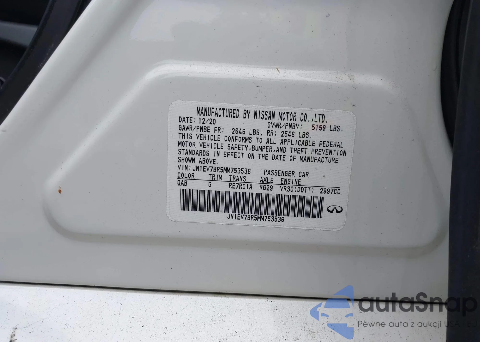 LOT: 42763004 VIN: 5N1DR3BD5NC267645