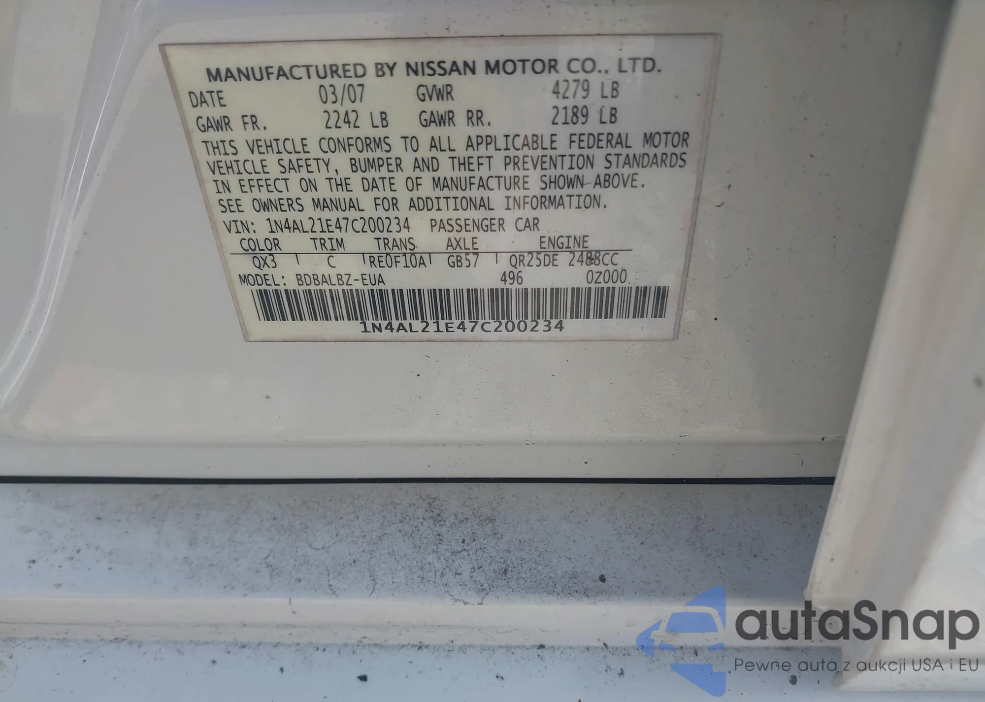 • VIN 1N4AL3AP8DN447456