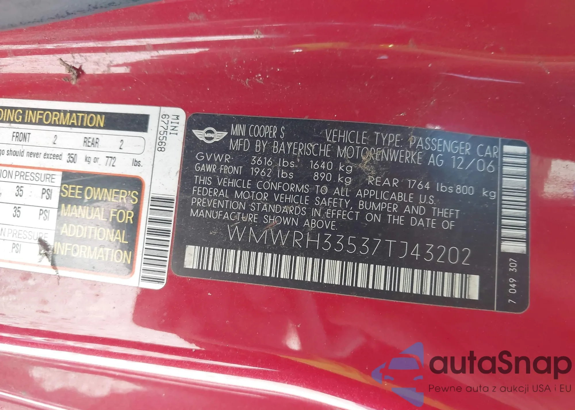 • VIN WMWRH33537TJ43202