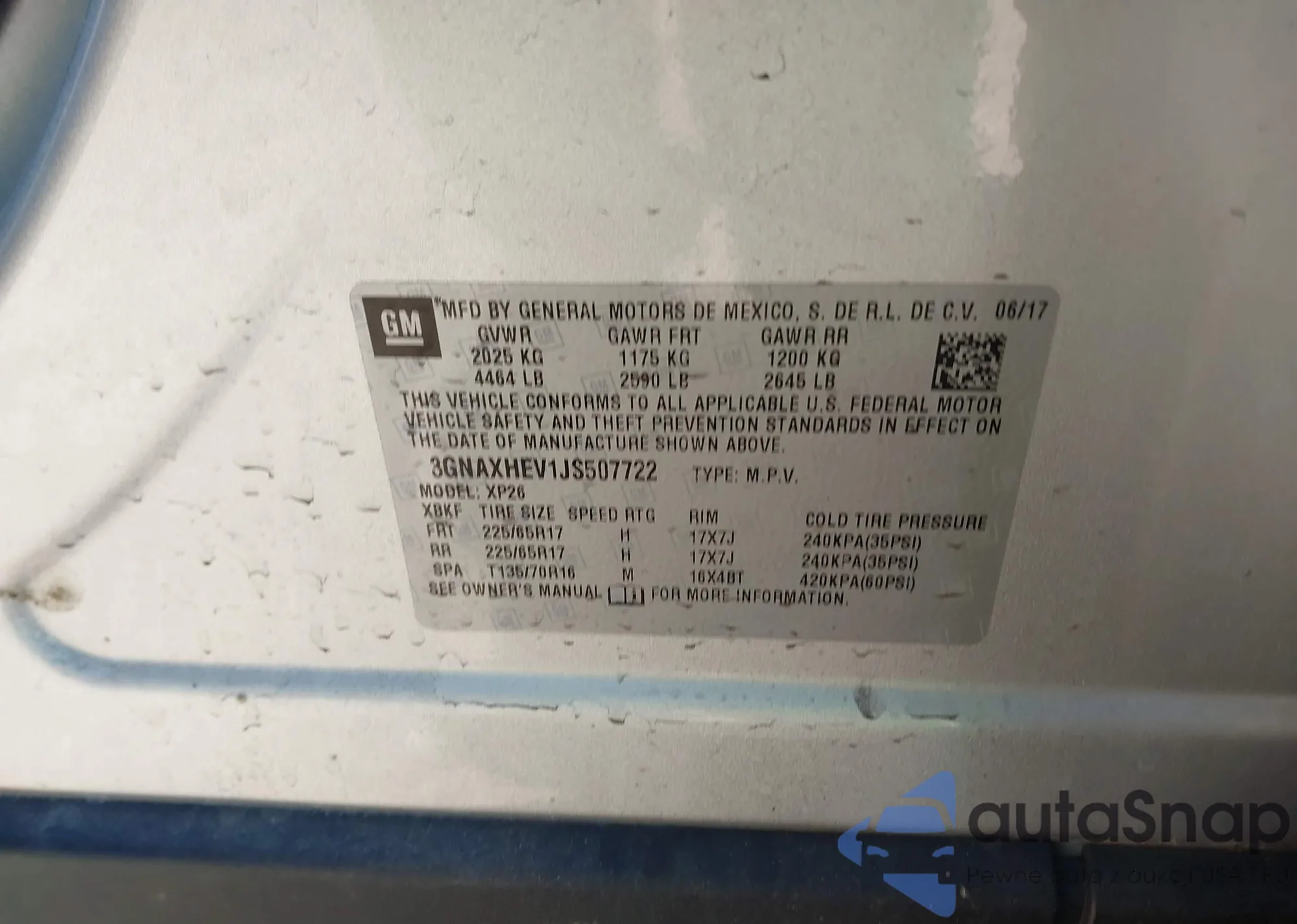 • VIN 3GNAXHEV1JS507722