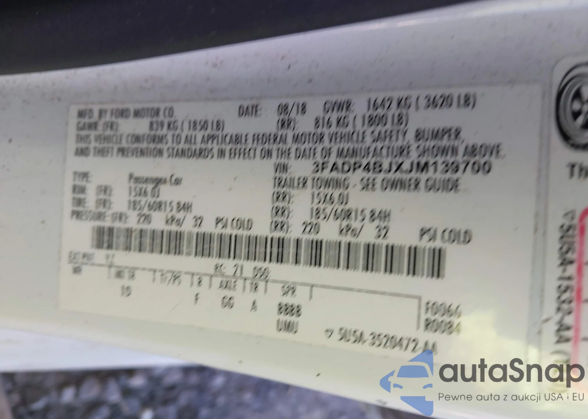 LOT: 41804463 VIN: 3FADP4BJXJM139700