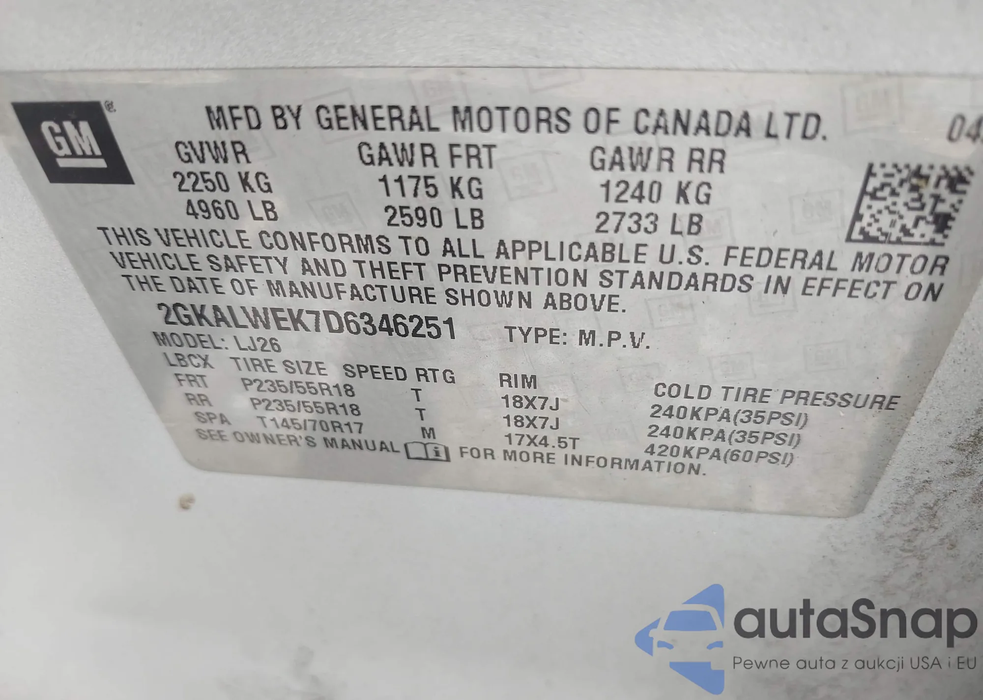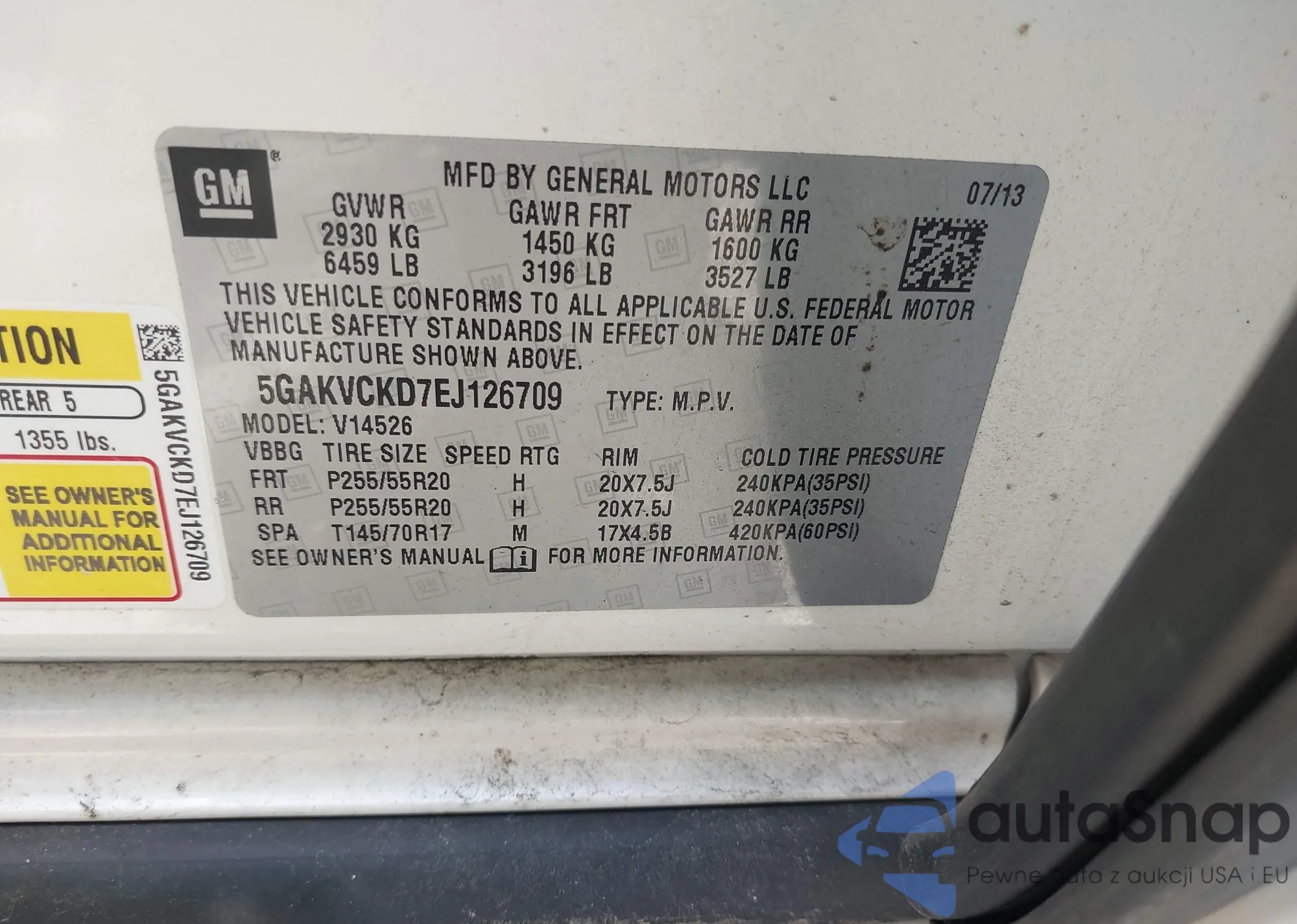 • VIN 5GAKVCKD7EJ126709