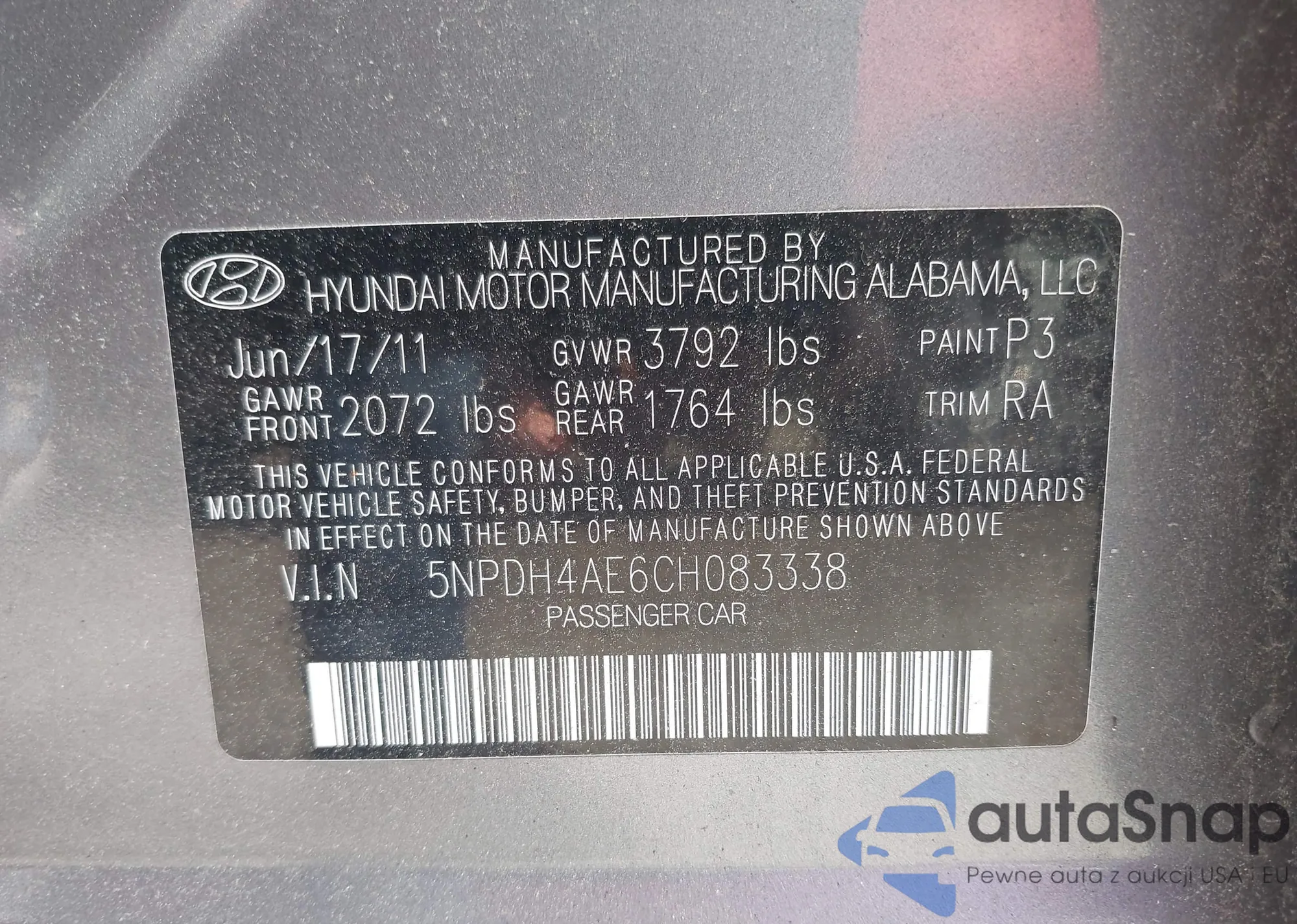 LOT: 42672376 VIN: 5NPD74LF1HH169642