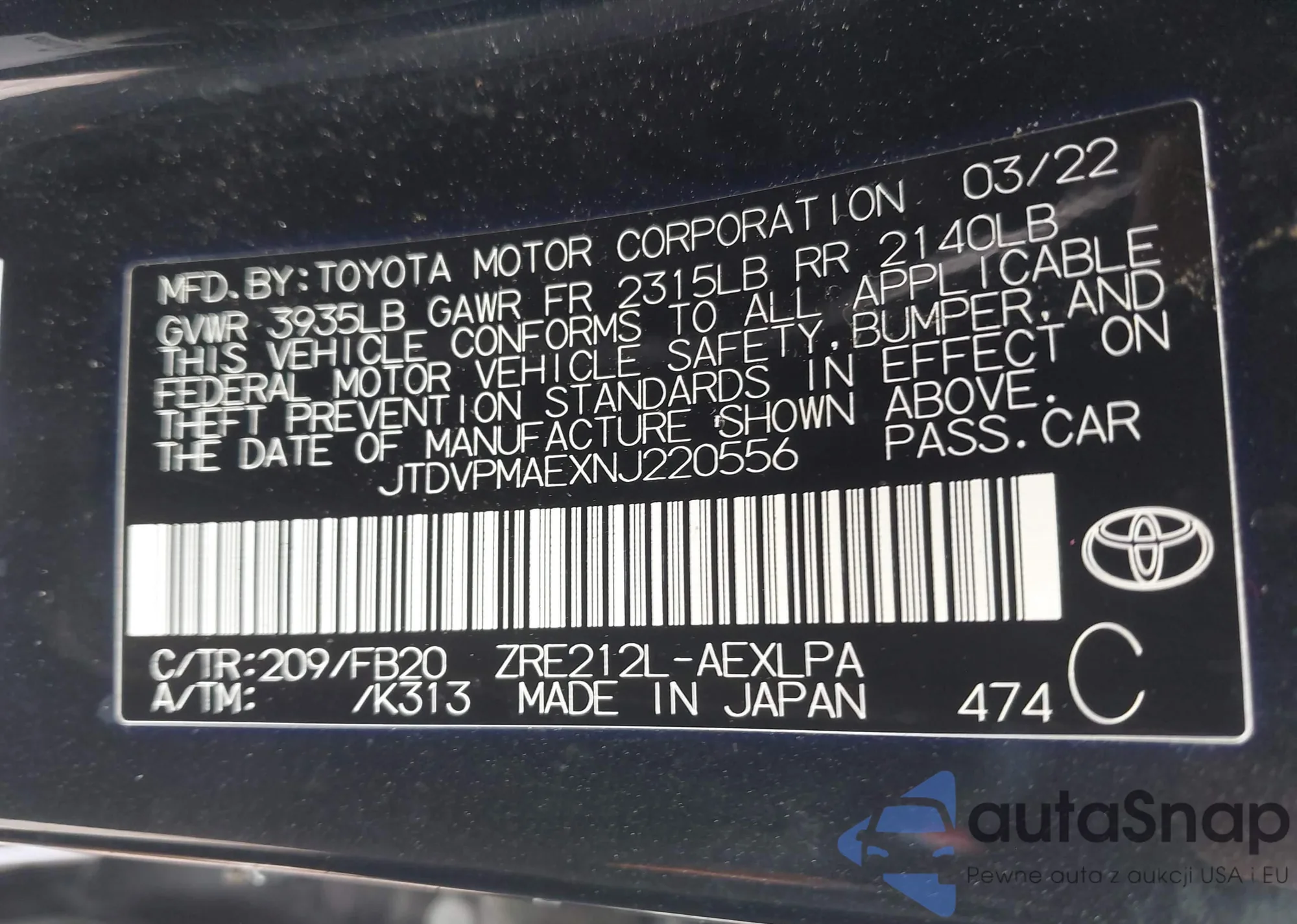 • VIN JTDVPMAEXNJ220556