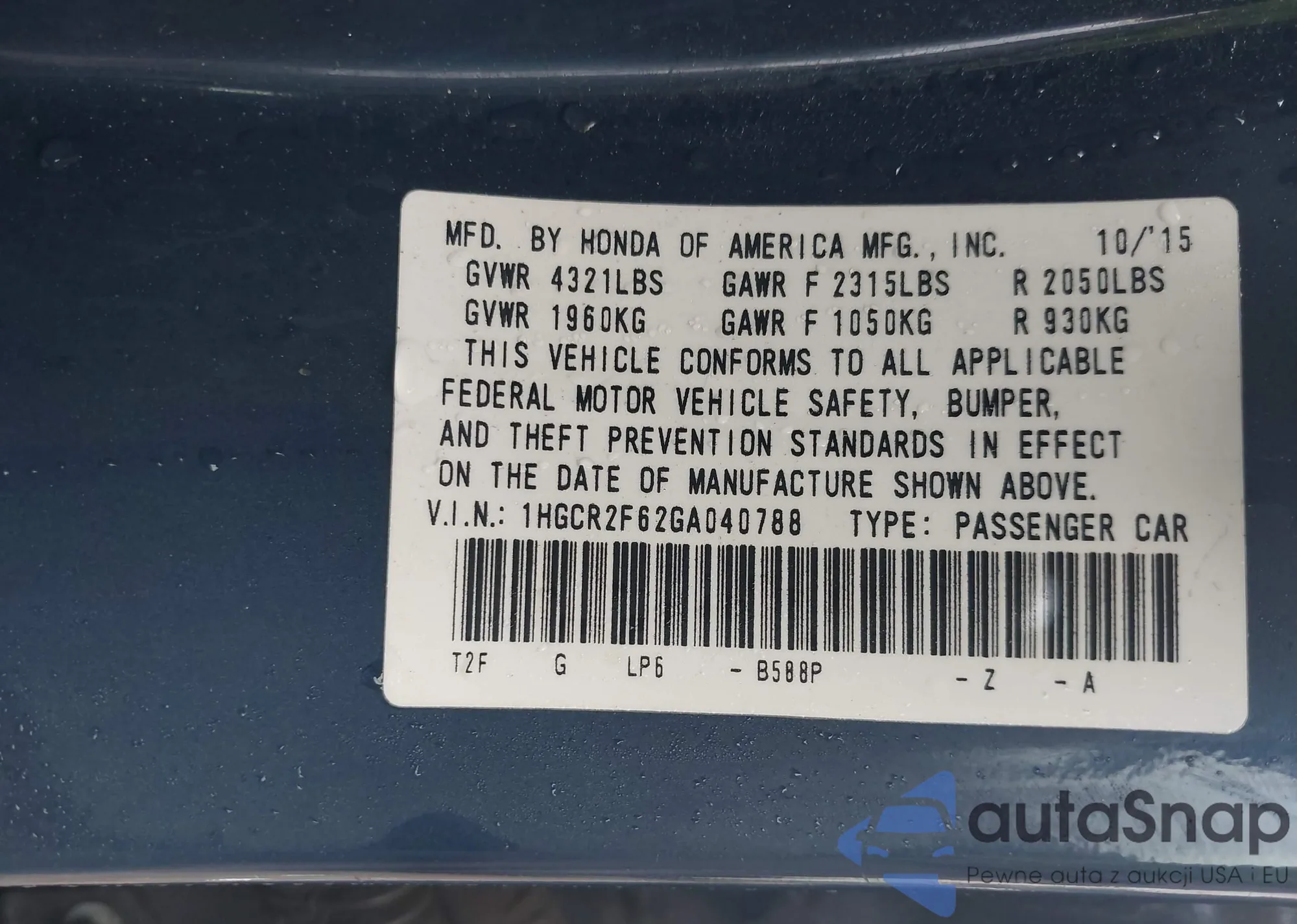 • VIN 1HGCR2F62GA040788