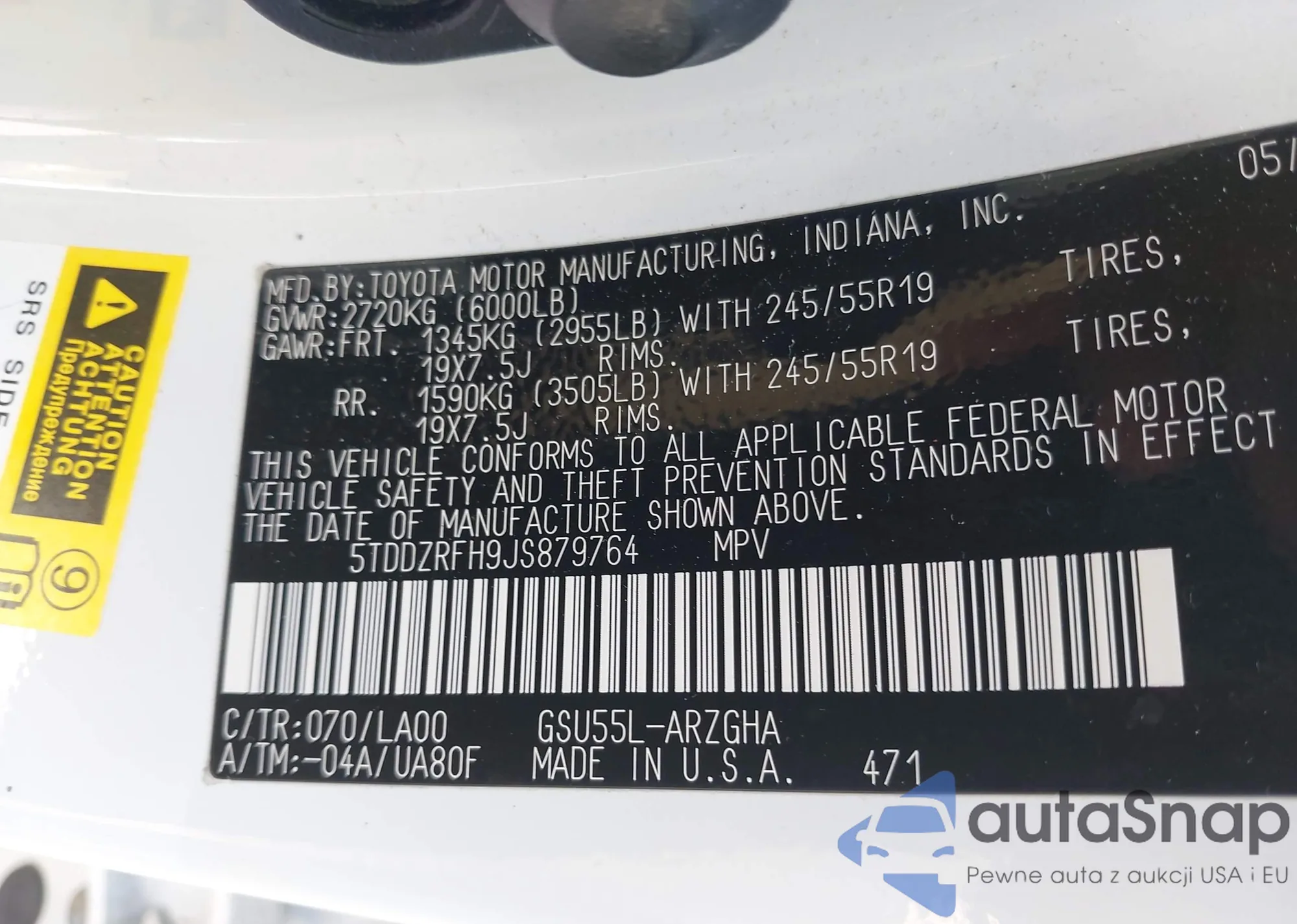 • VIN 5TDDZRFH9JS879764