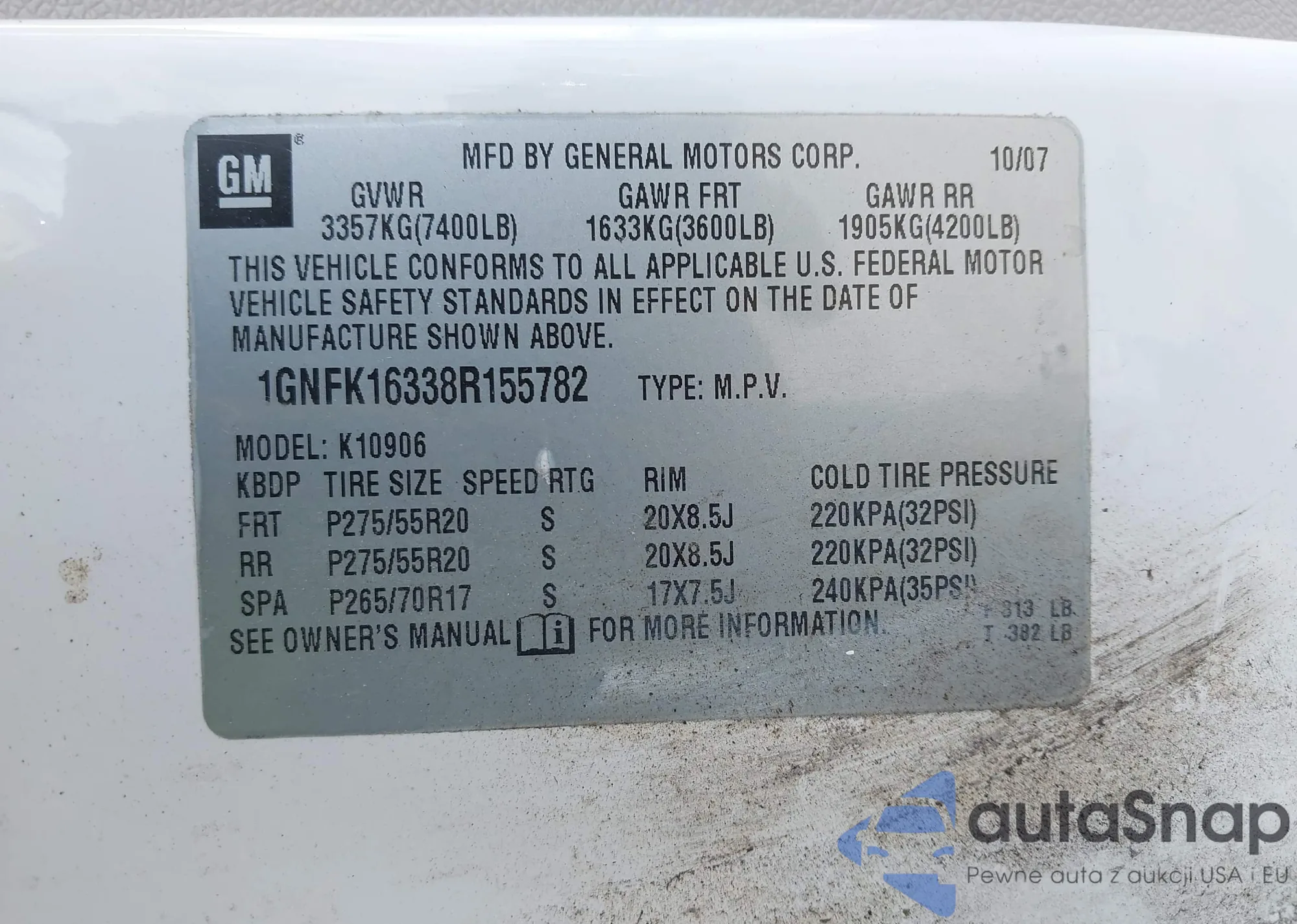 LOT: 42801547 VIN: 1GNFK16338R155782