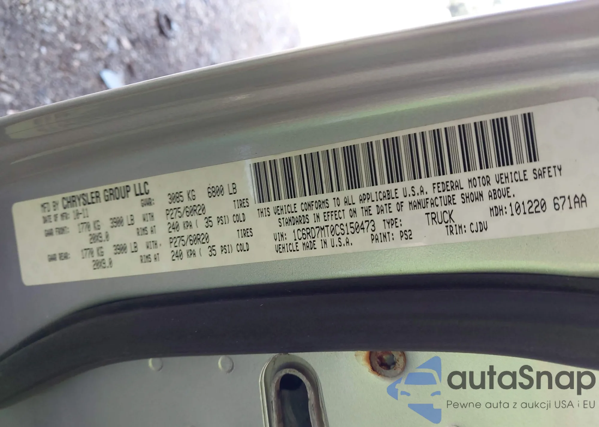 • VIN 1C6RD7MT0CS150473
