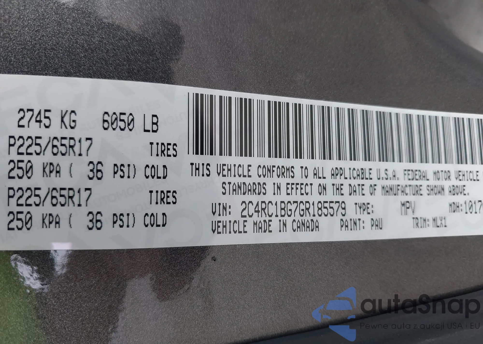 • VIN 2C4RC1BG7GR185579