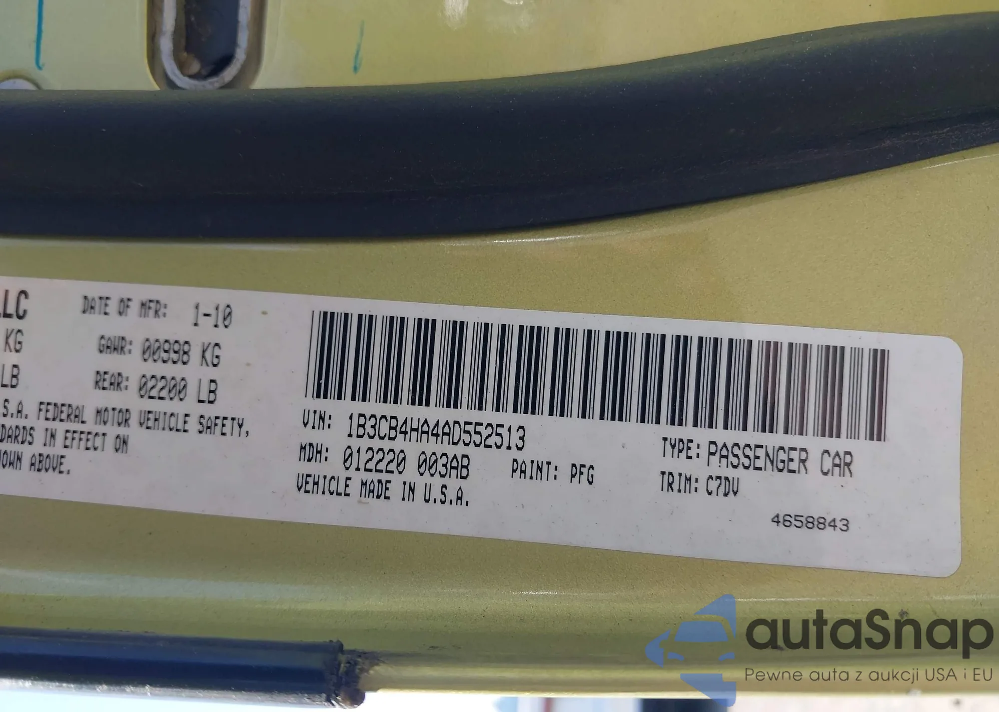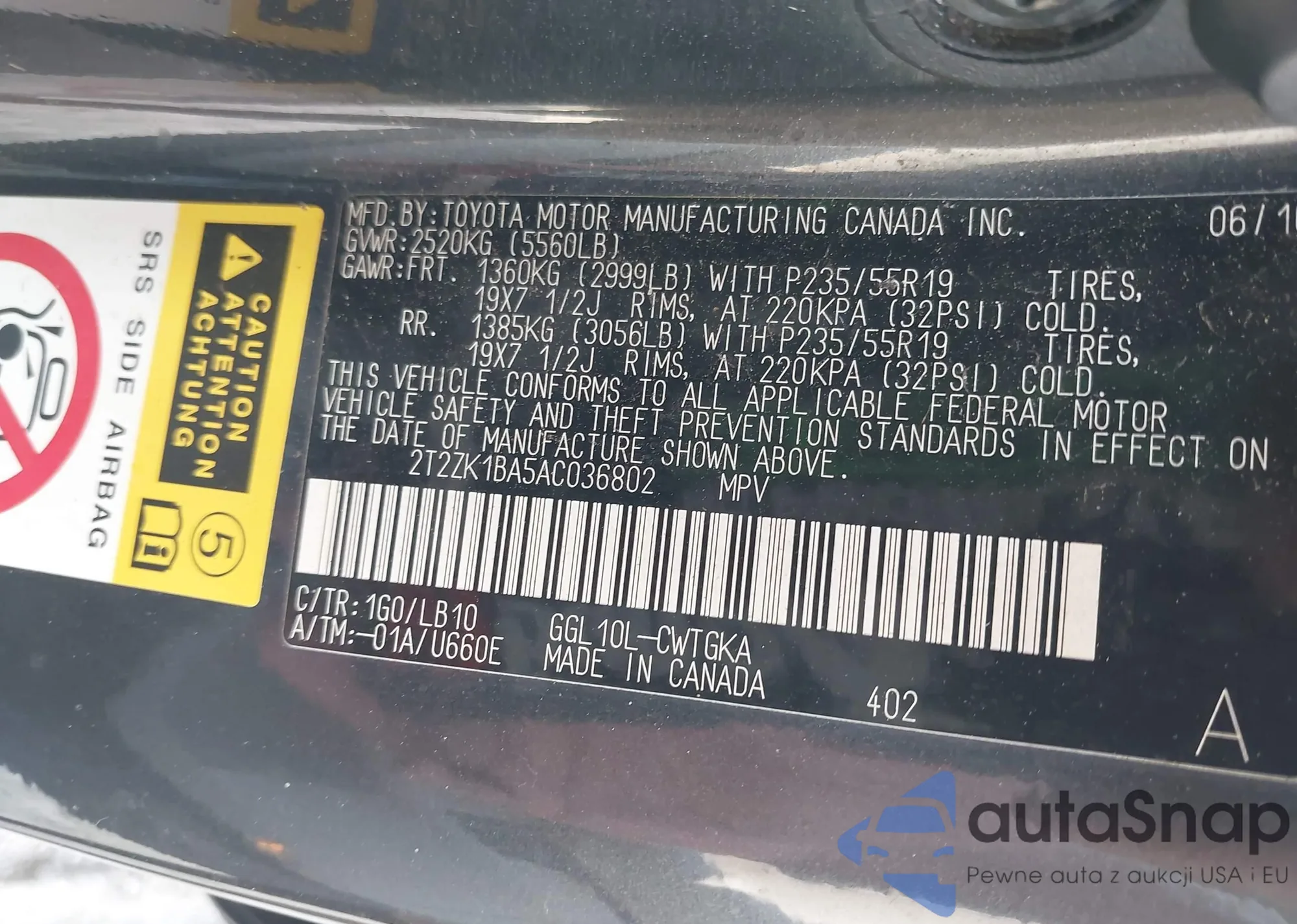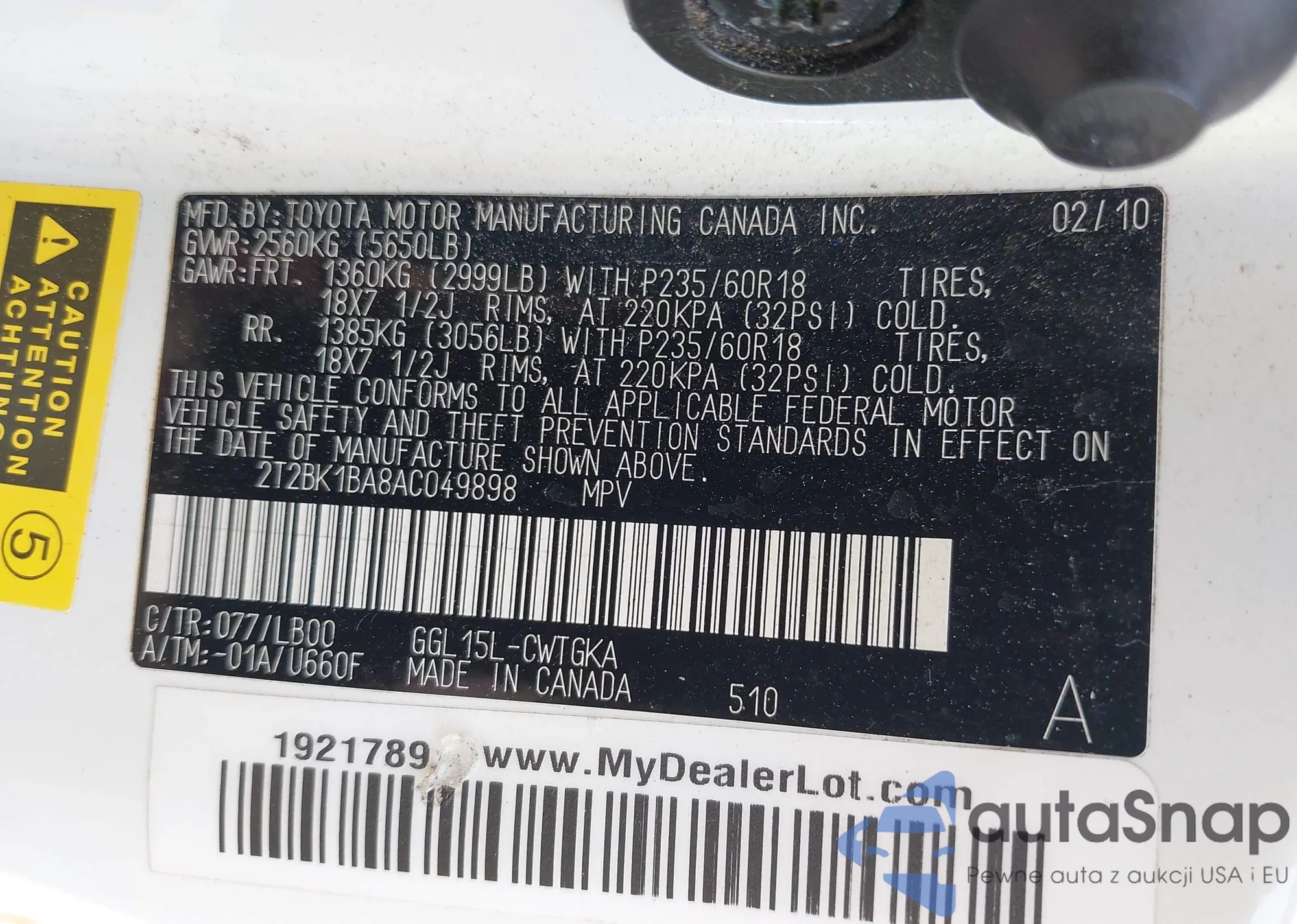 LOT: 42476591 VIN: 2T2BK1BA8AC049898
