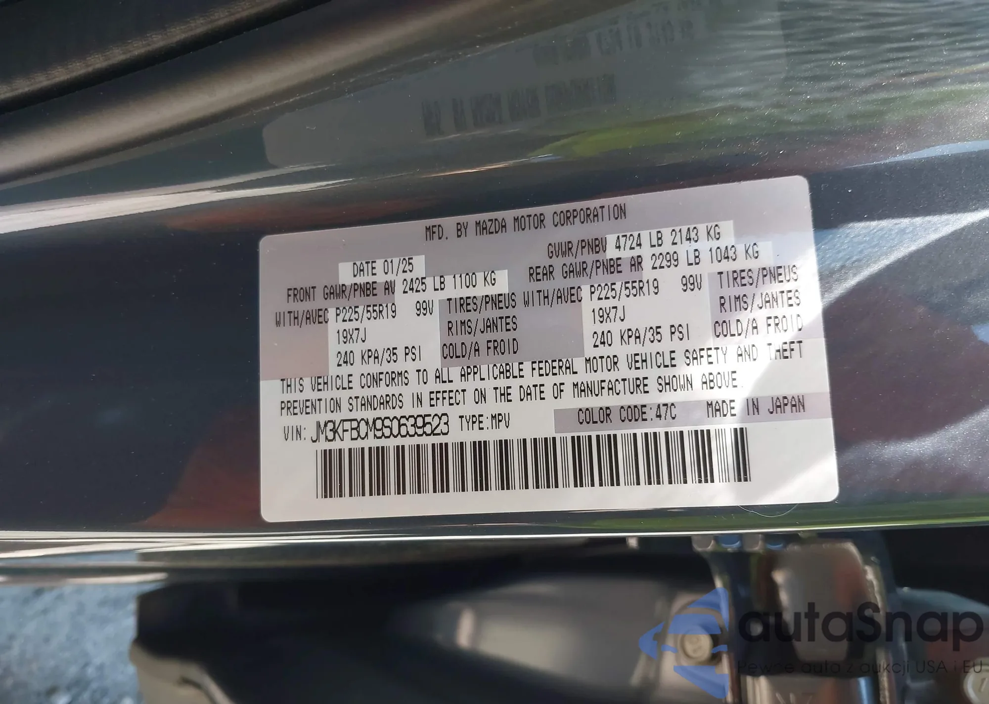LOT: 42391356 VIN: JM3KFBCM9S0639523