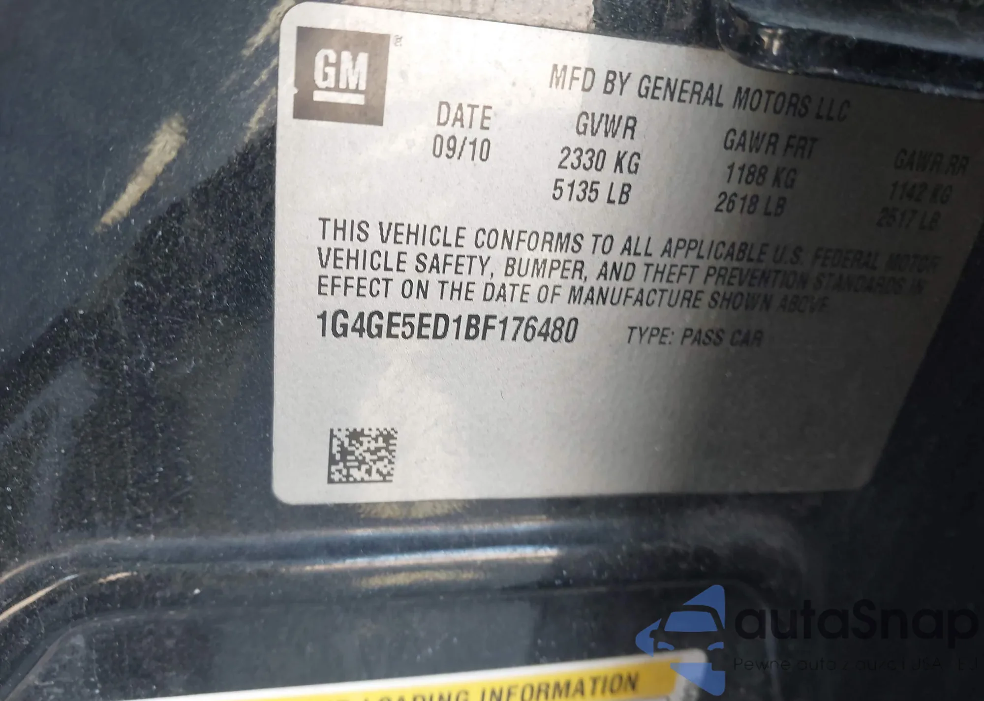• VIN 1G4GE5ED1BF176480