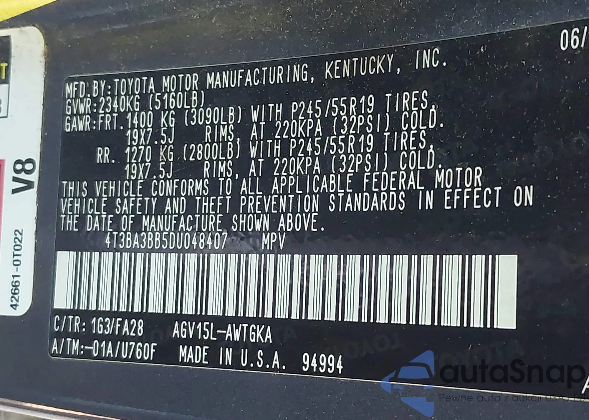 • VIN 4T1BD1FK4CU013855