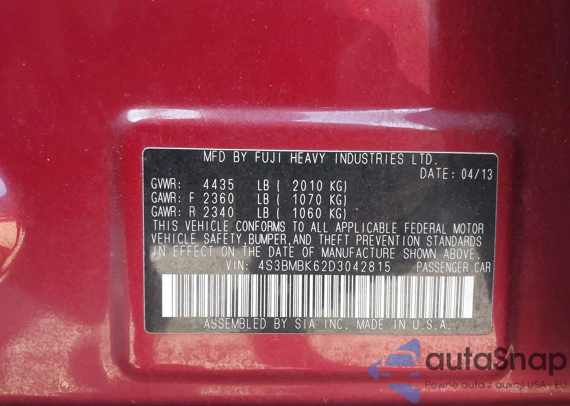 • VIN 4S3BMBK62D3042815