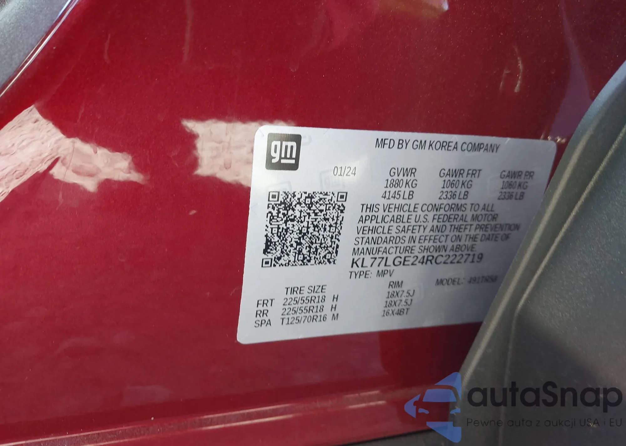 LOT: 40667351 VIN: KL77LGE24RC222719
