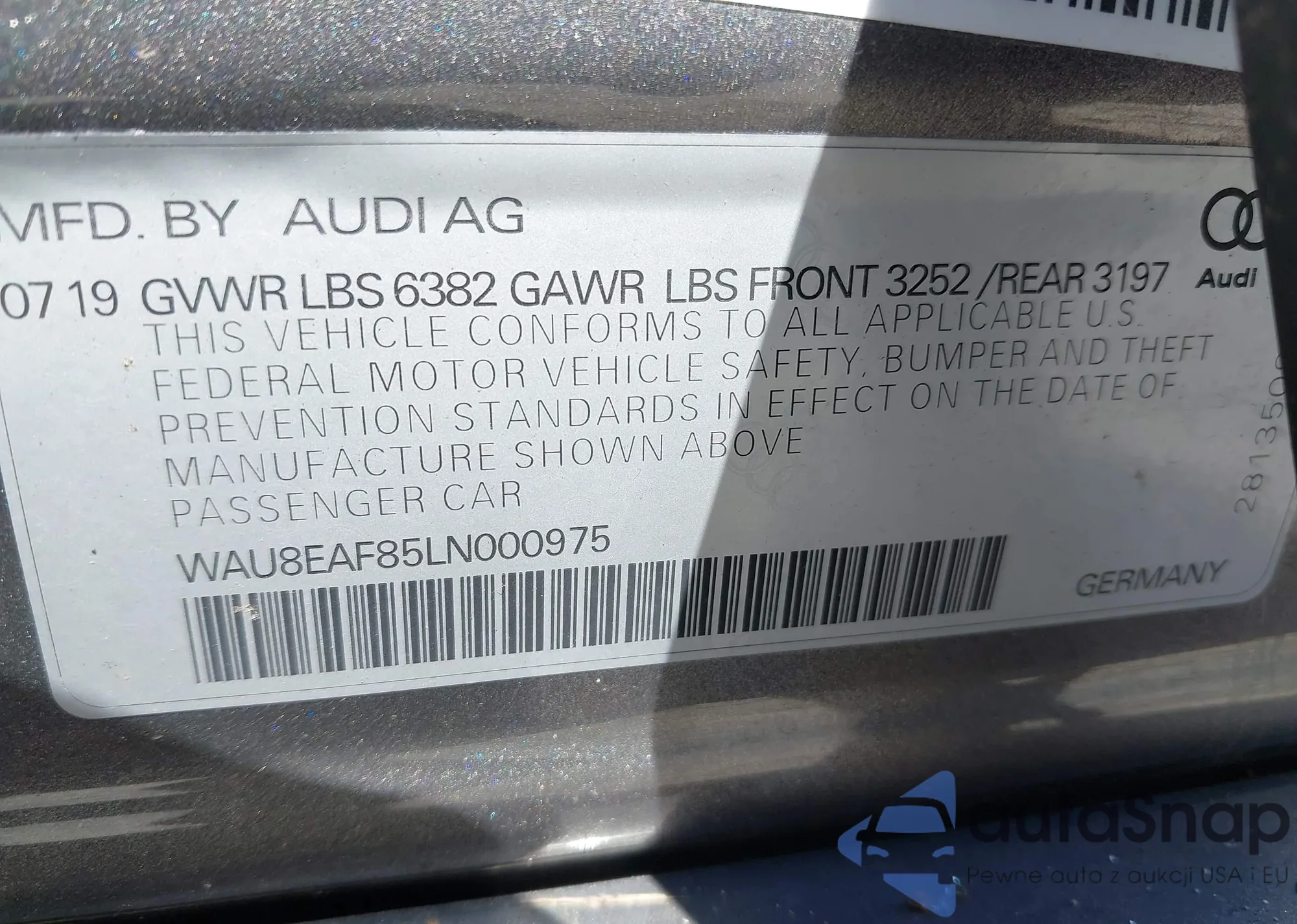 LOT: 42581492 VIN: WAU8EAF85LN000975