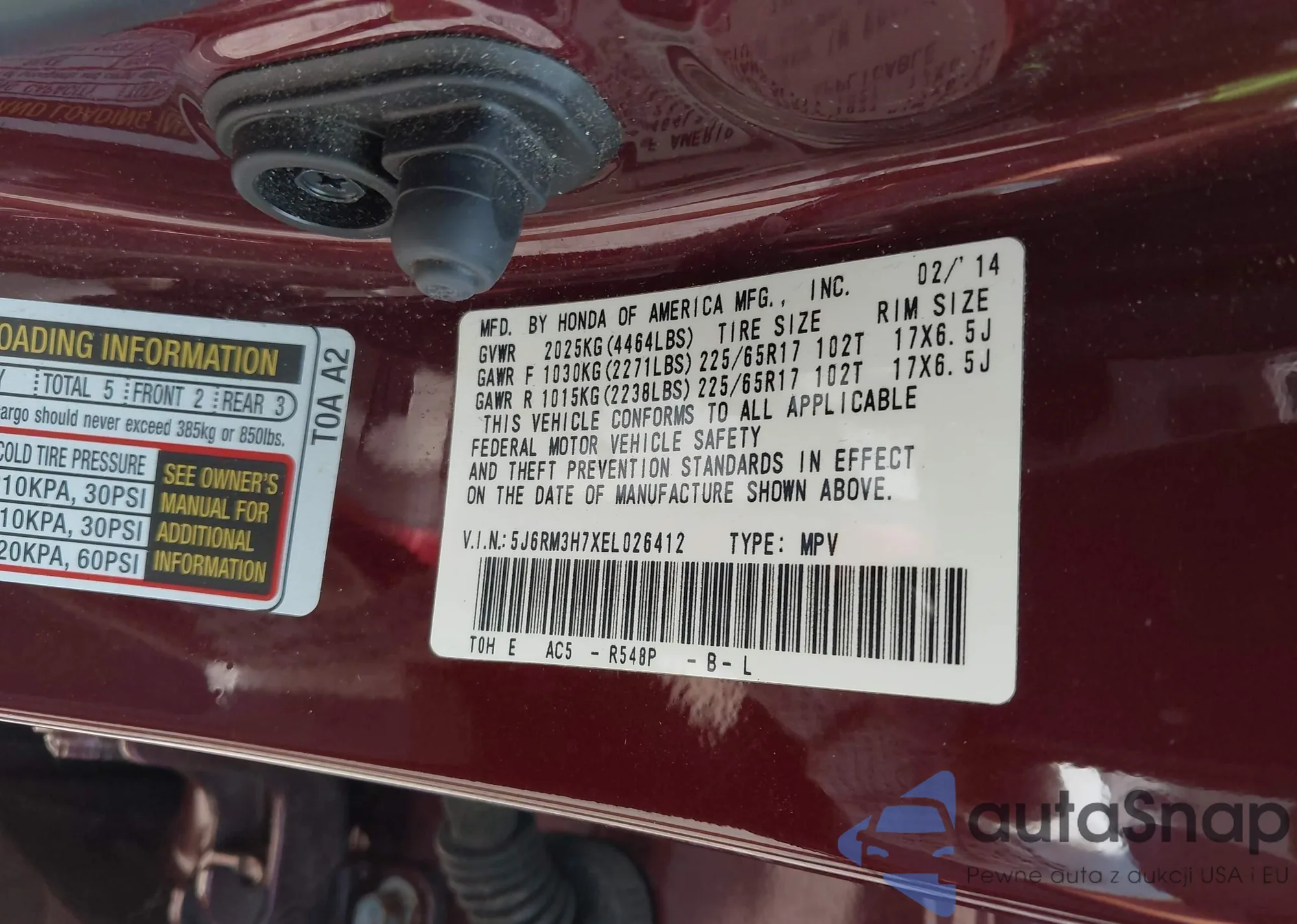 • VIN 2HKRM4H52GH713966