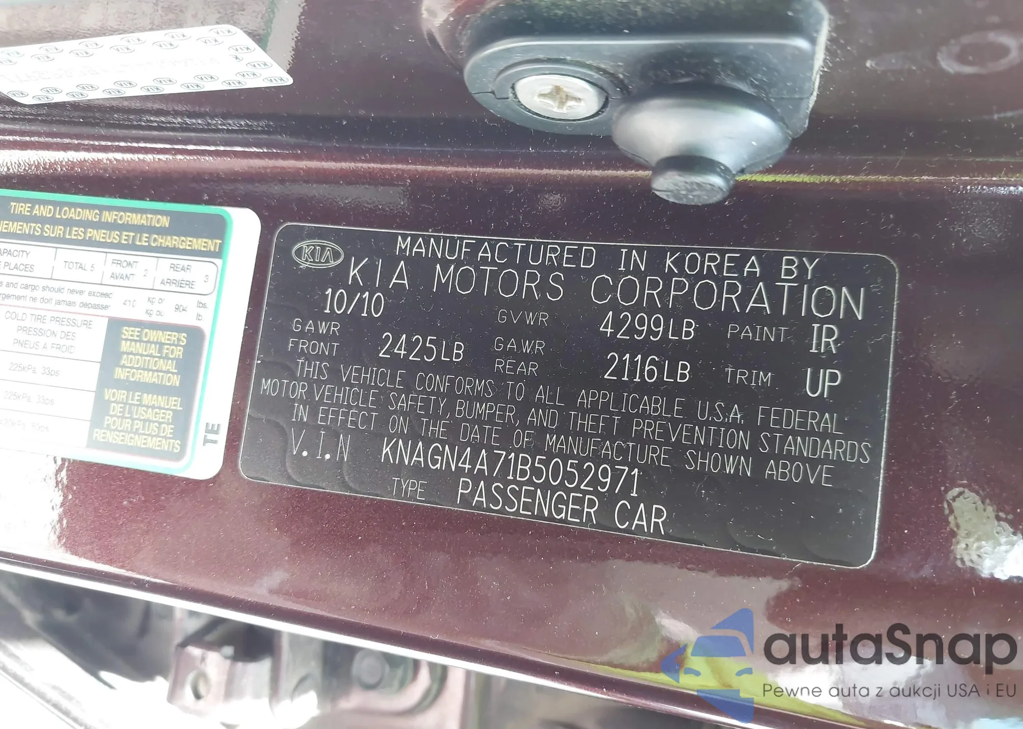 • VIN KNAGN4A71B5052971