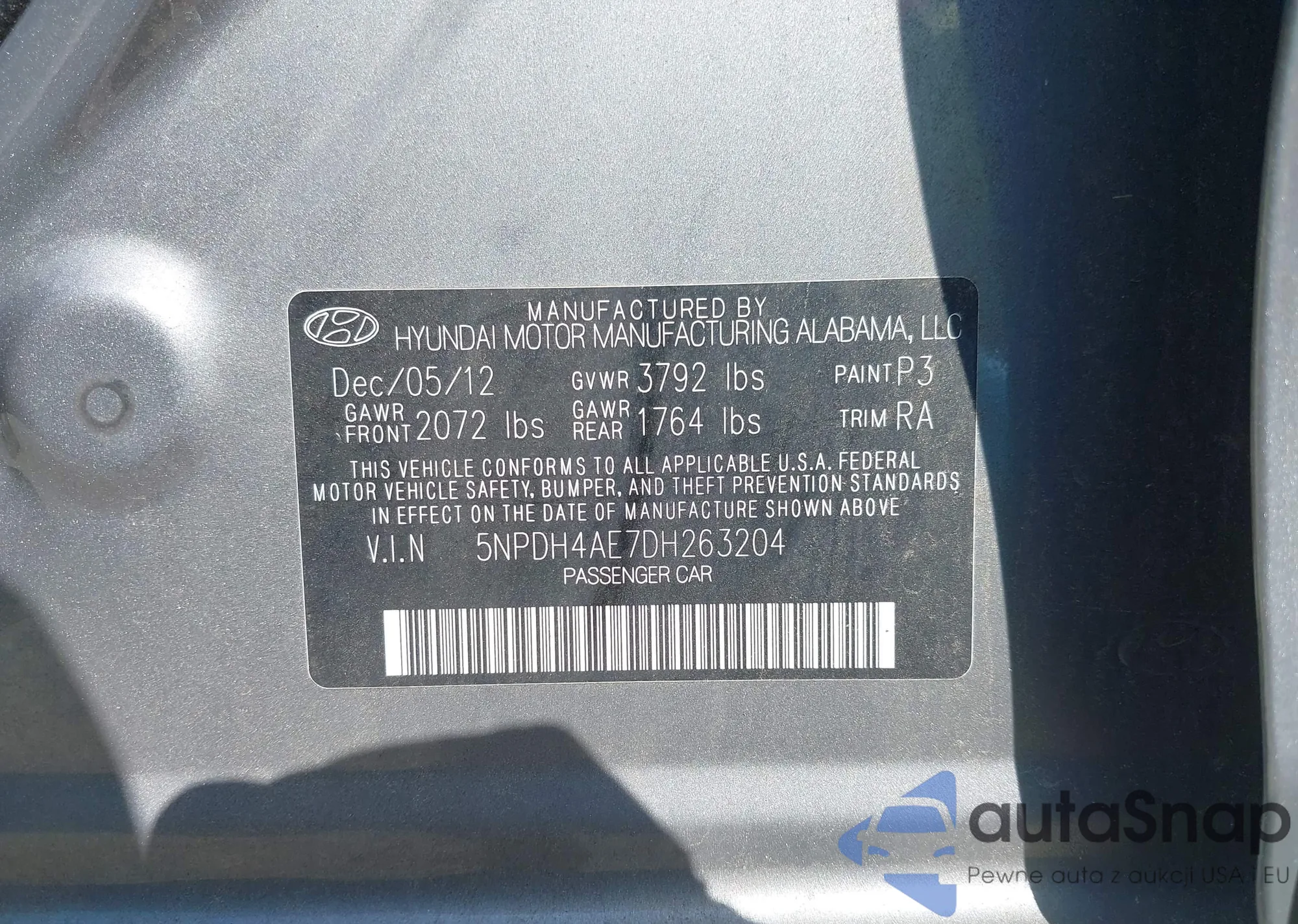 • VIN 5NPDH4AE7DH263204