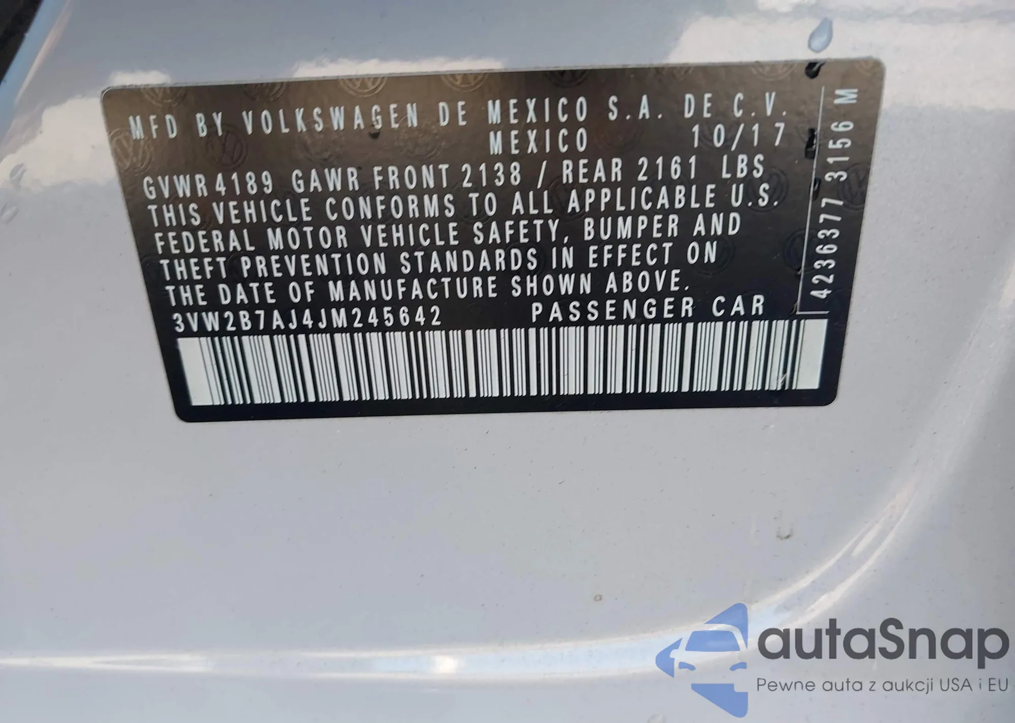 • VIN 3VW2B7AJ4JM245642