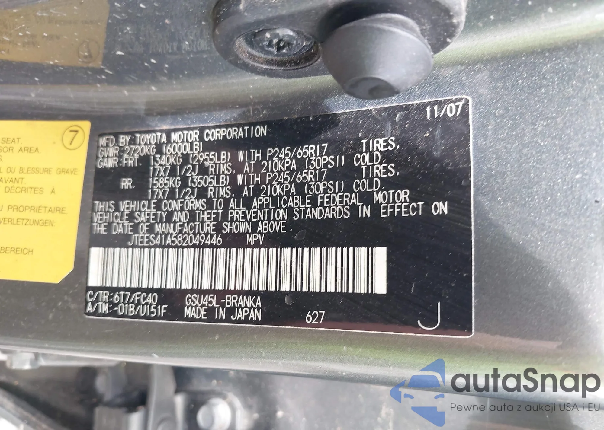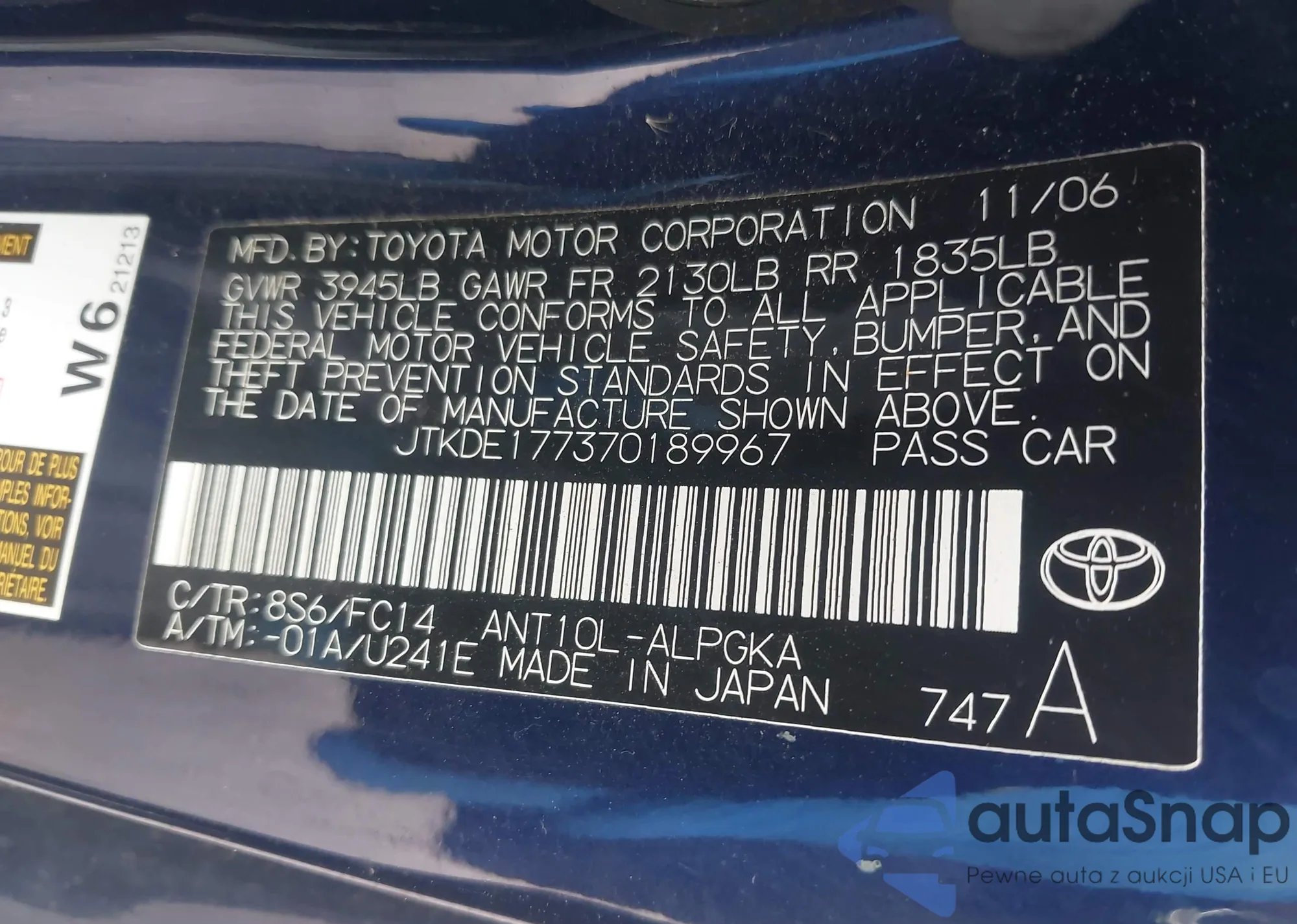 2007 Scion Tc from USA, damaged, VIN JTKDE177370189967