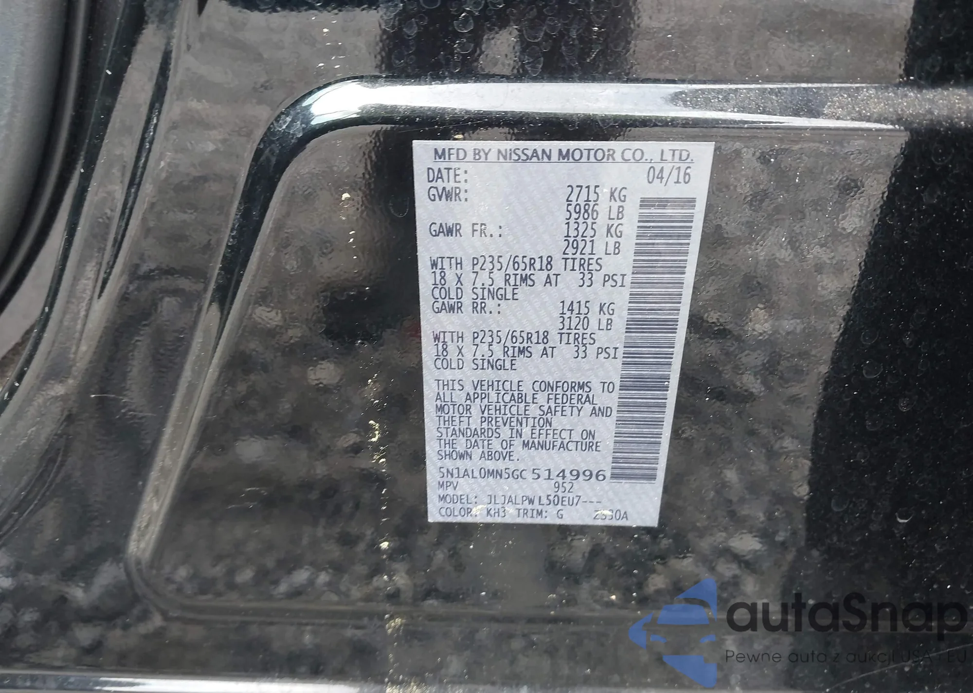 • VIN 5N1AL0MN5GC514996