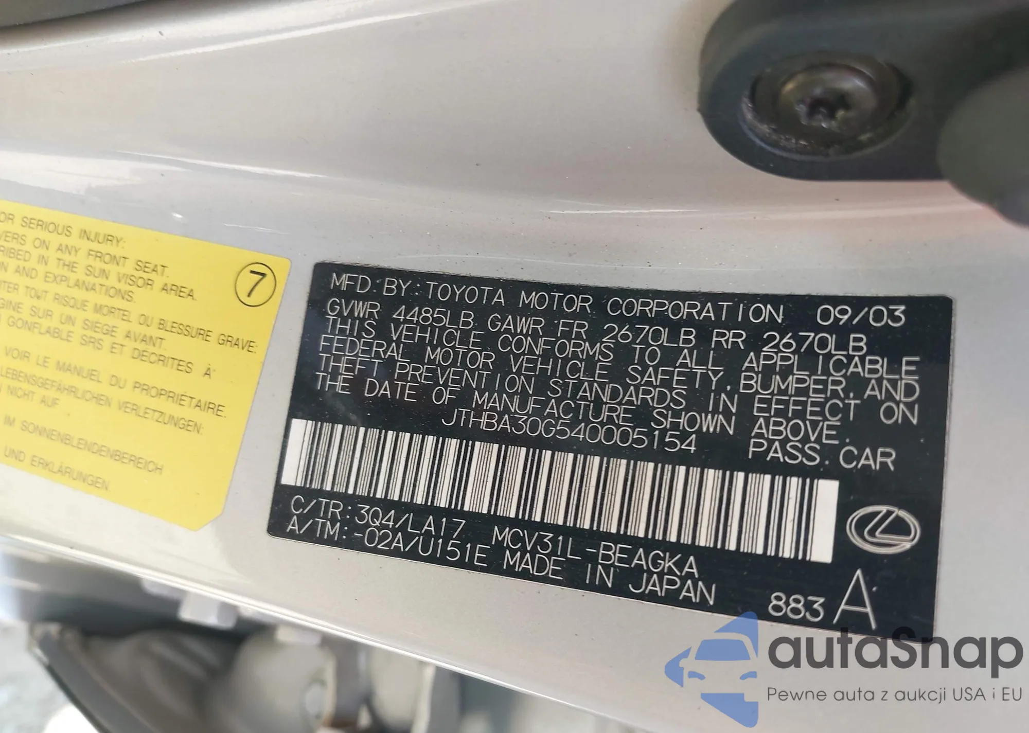 LOT: 42973751 VIN: JTEES41A582049446
