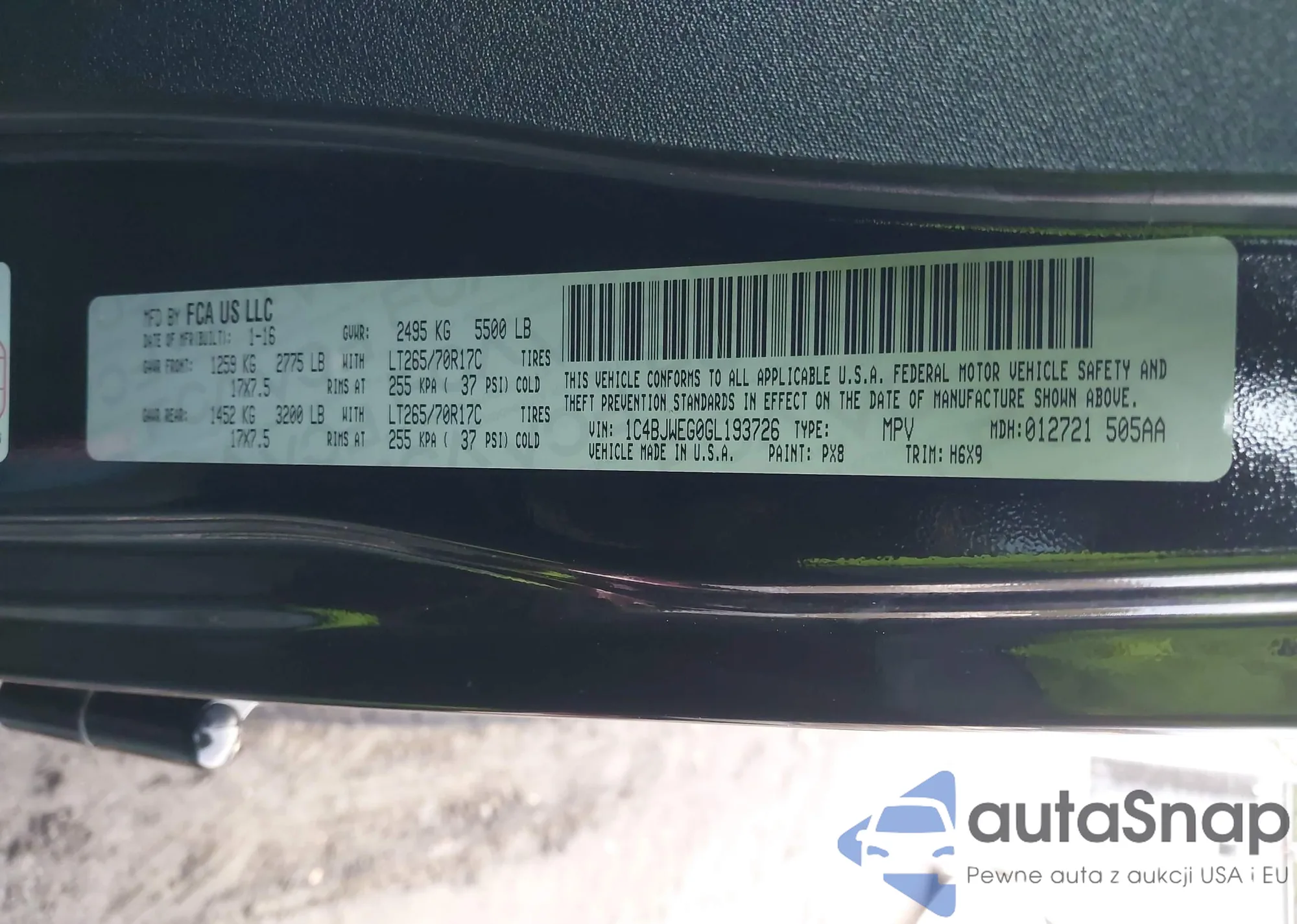 • VIN 1C4BJWEG0GL193726