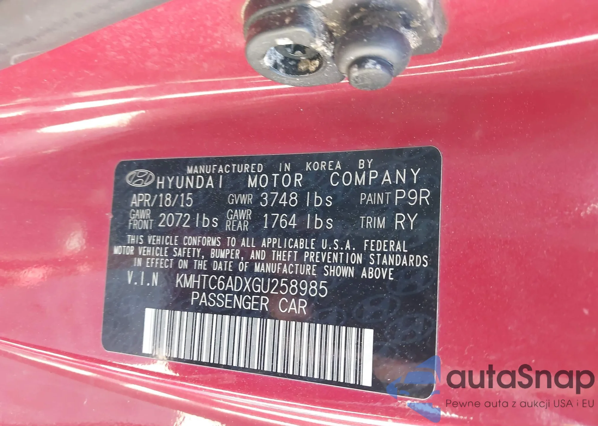 LOT: 42771982 VIN: KM8K22AA0JU107643