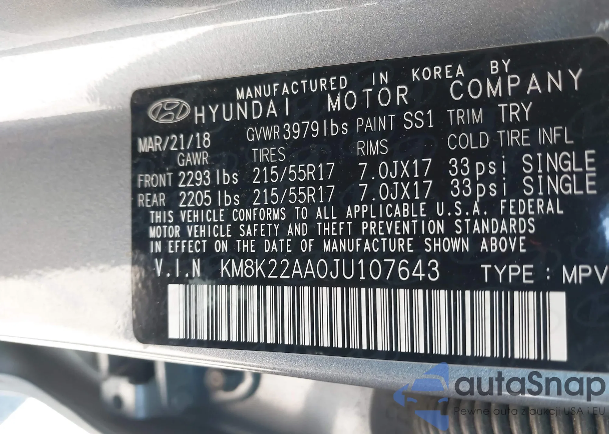 • VIN KM8K22AA0JU107643