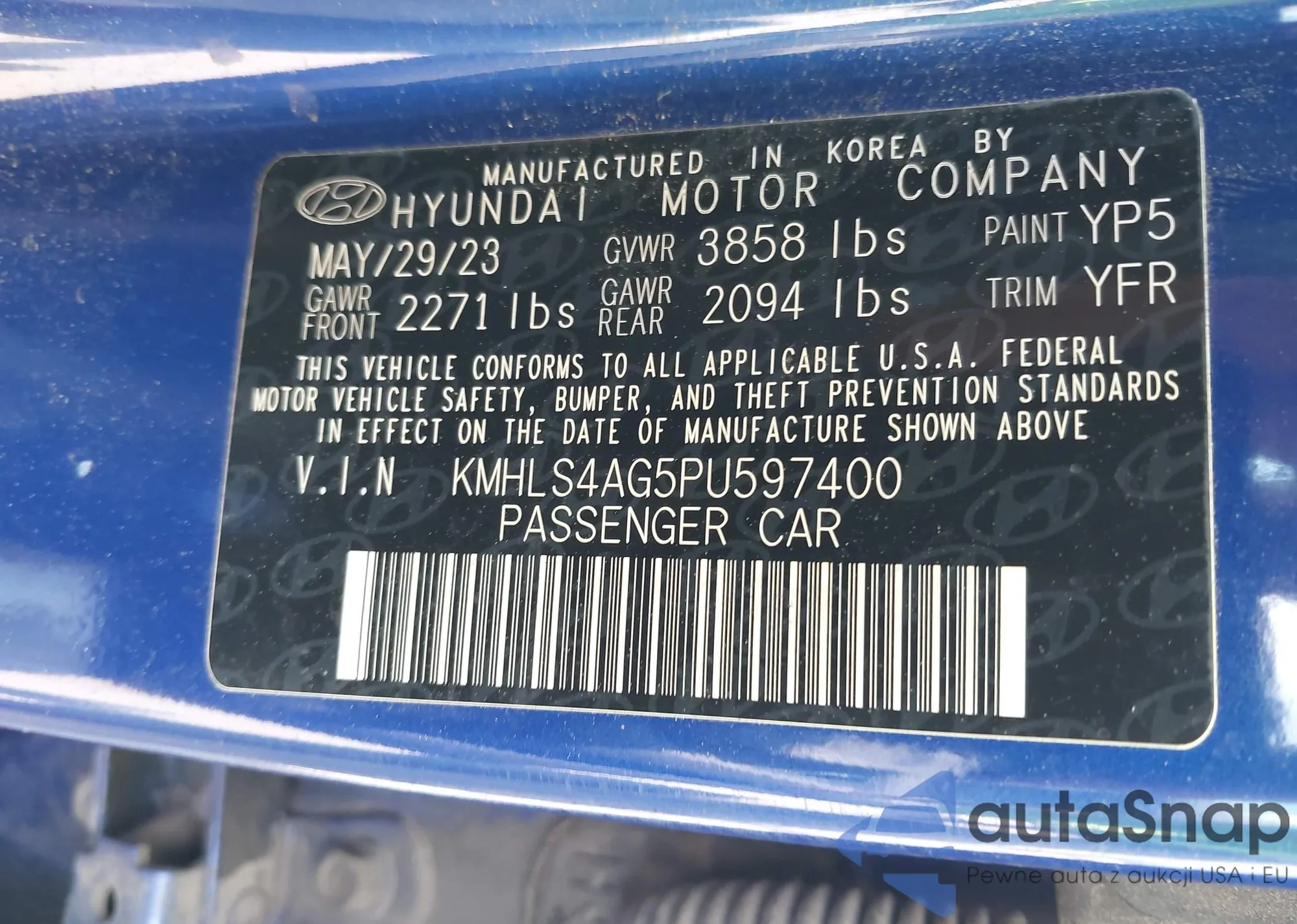 • VIN KMHLS4AG5PU597400