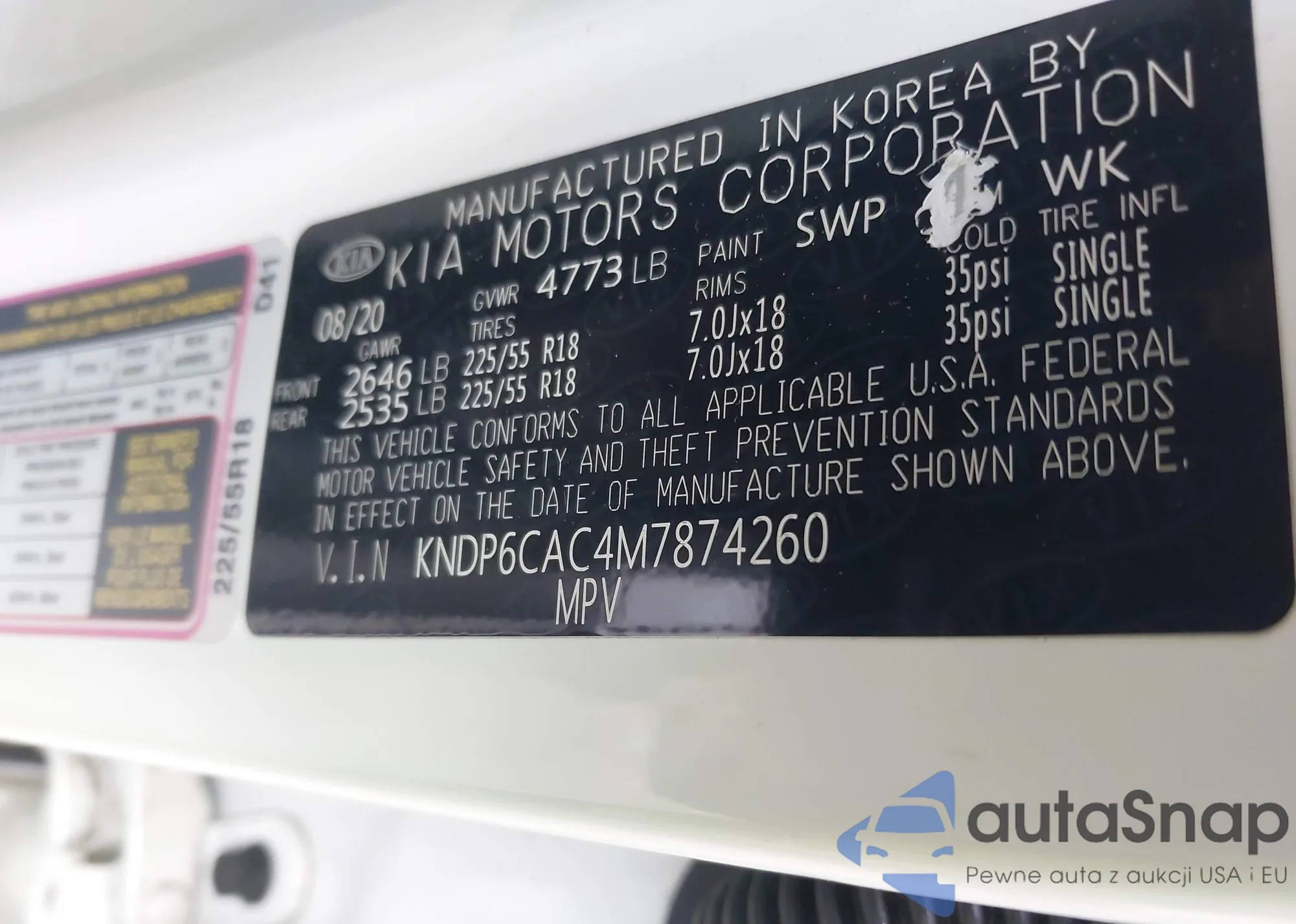 • VIN KNDP6CAC4M7874260