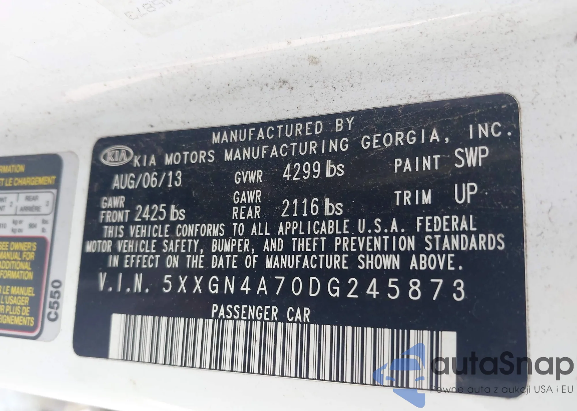 • VIN 5XXGN4A70DG245873