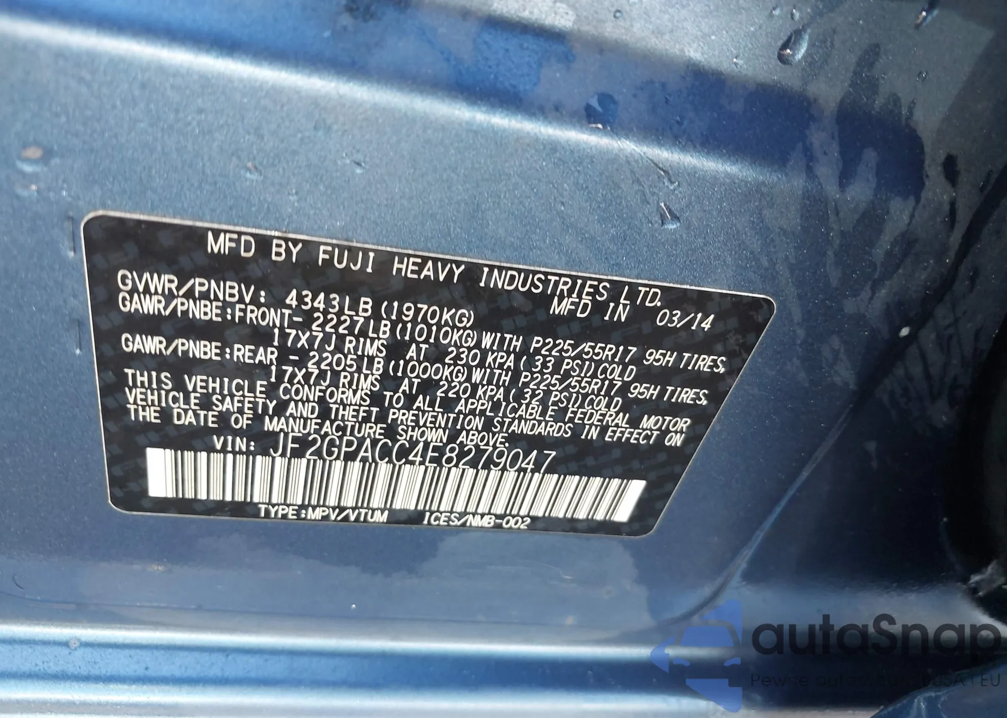 LOT: 42824759 VIN: JN1BJ1AW9NW476267