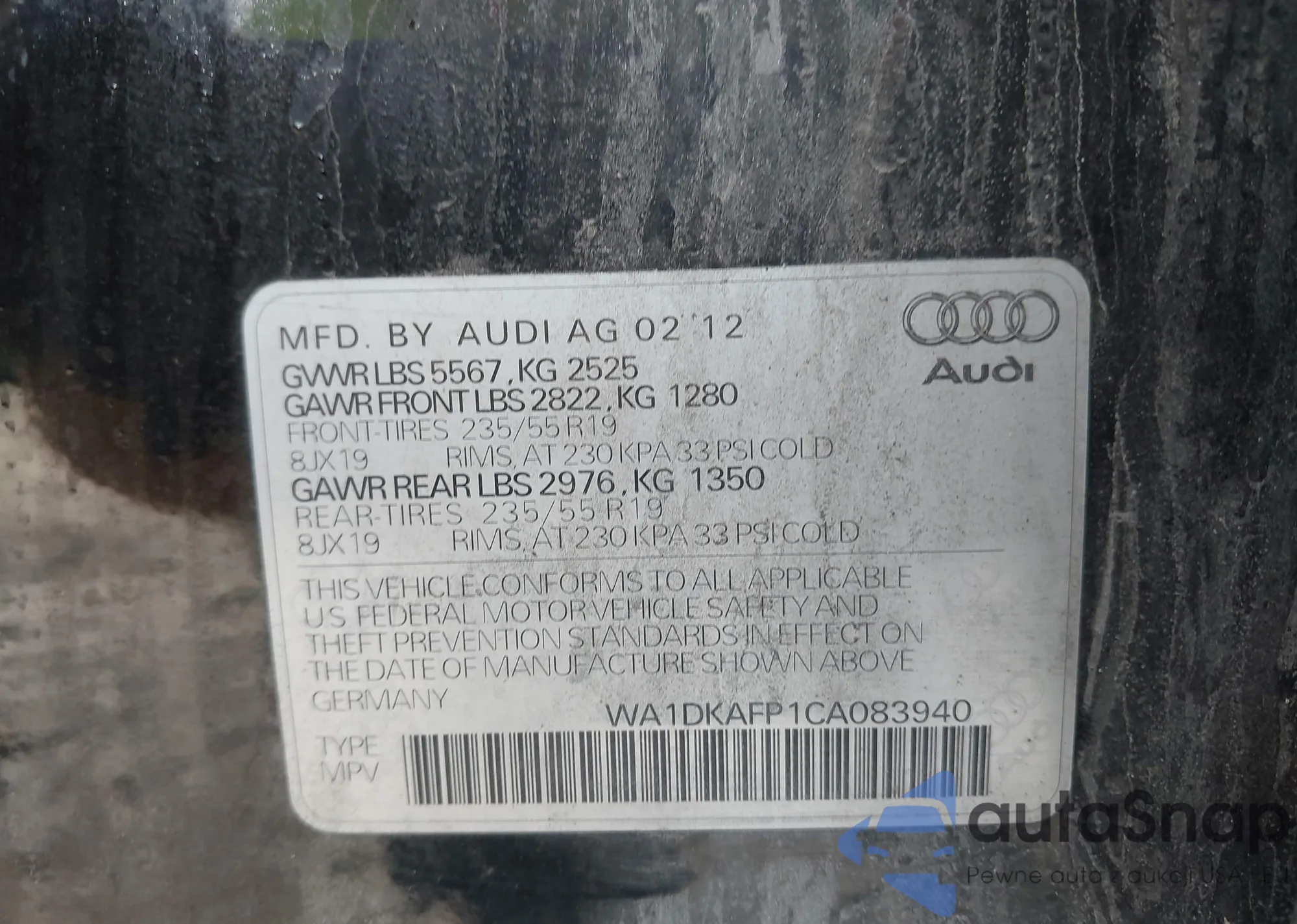 LOT: 42835126 VIN: WA1DKAFP1CA083940