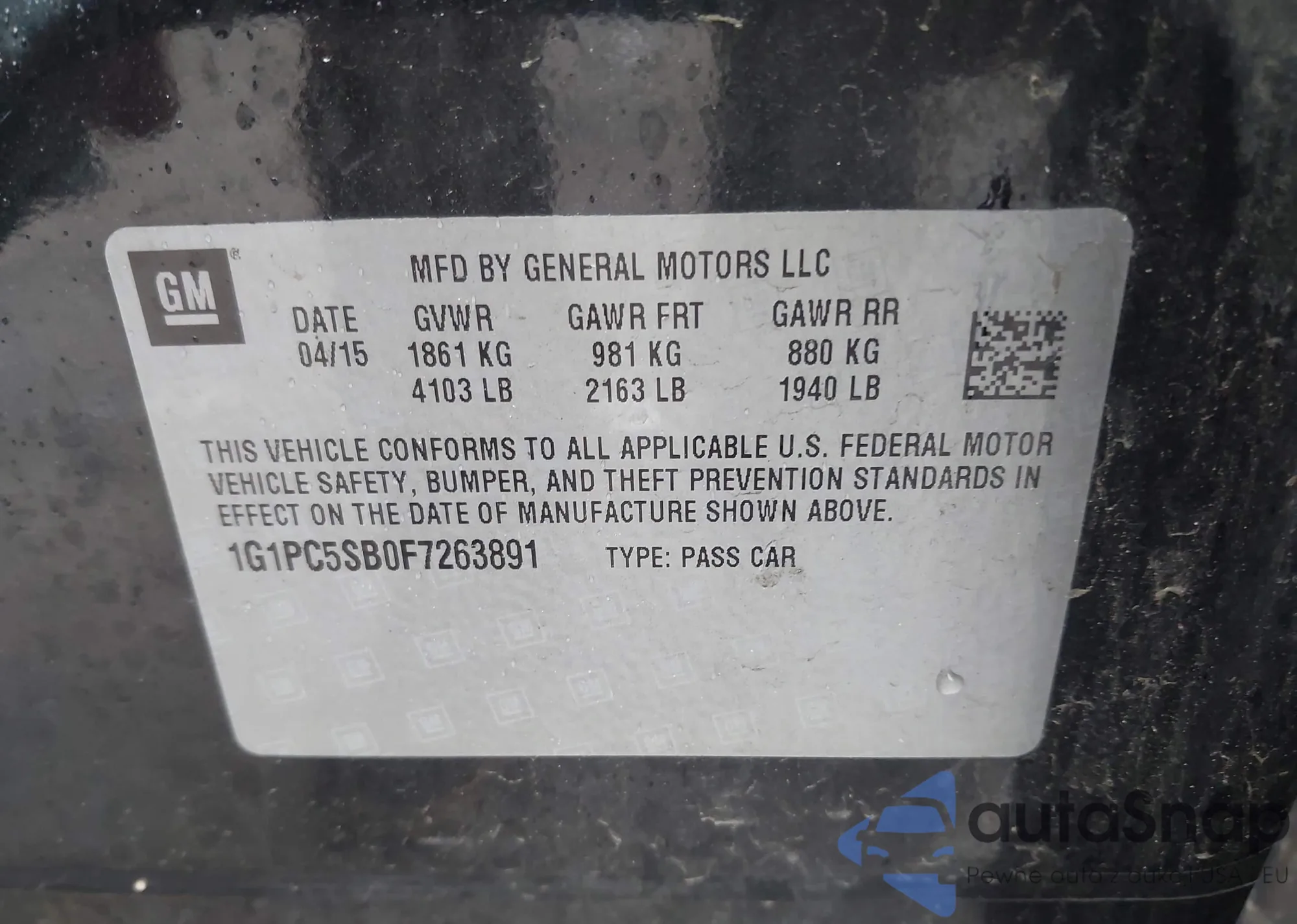 LOT: 42193136 VIN: 1G1PC5SB0F7263891