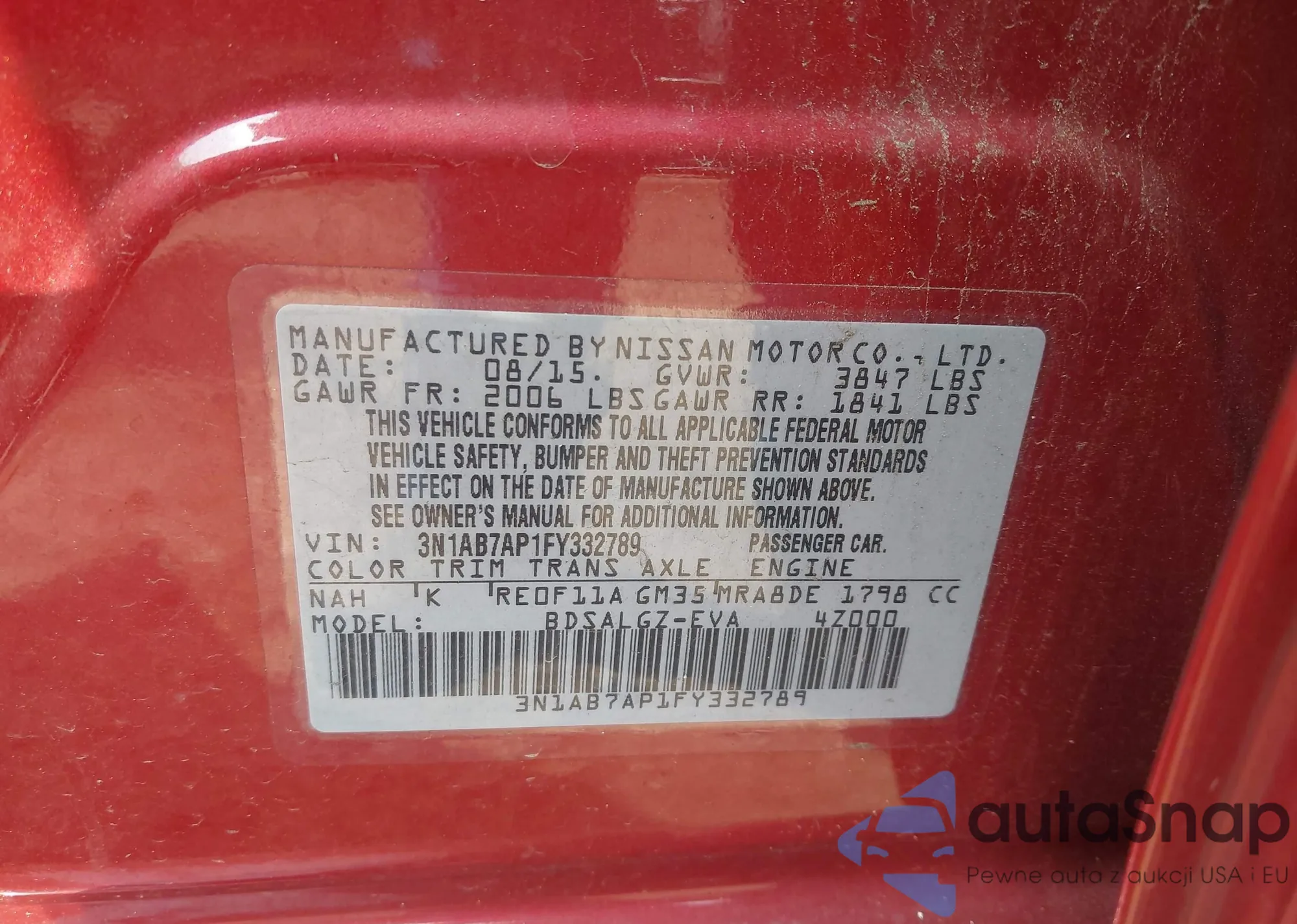 LOT: 42899983 VIN: 3N1AB7AP4FY276685