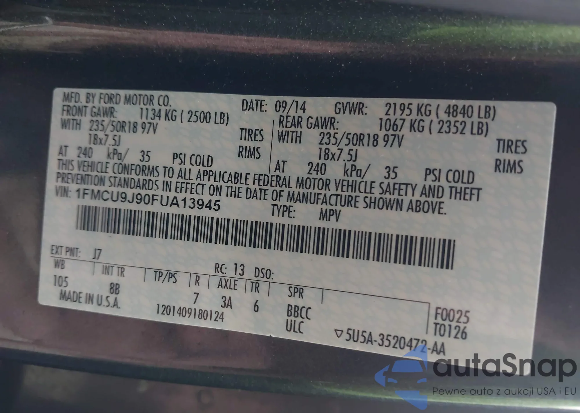 • VIN WAUKFAFL1CN006599