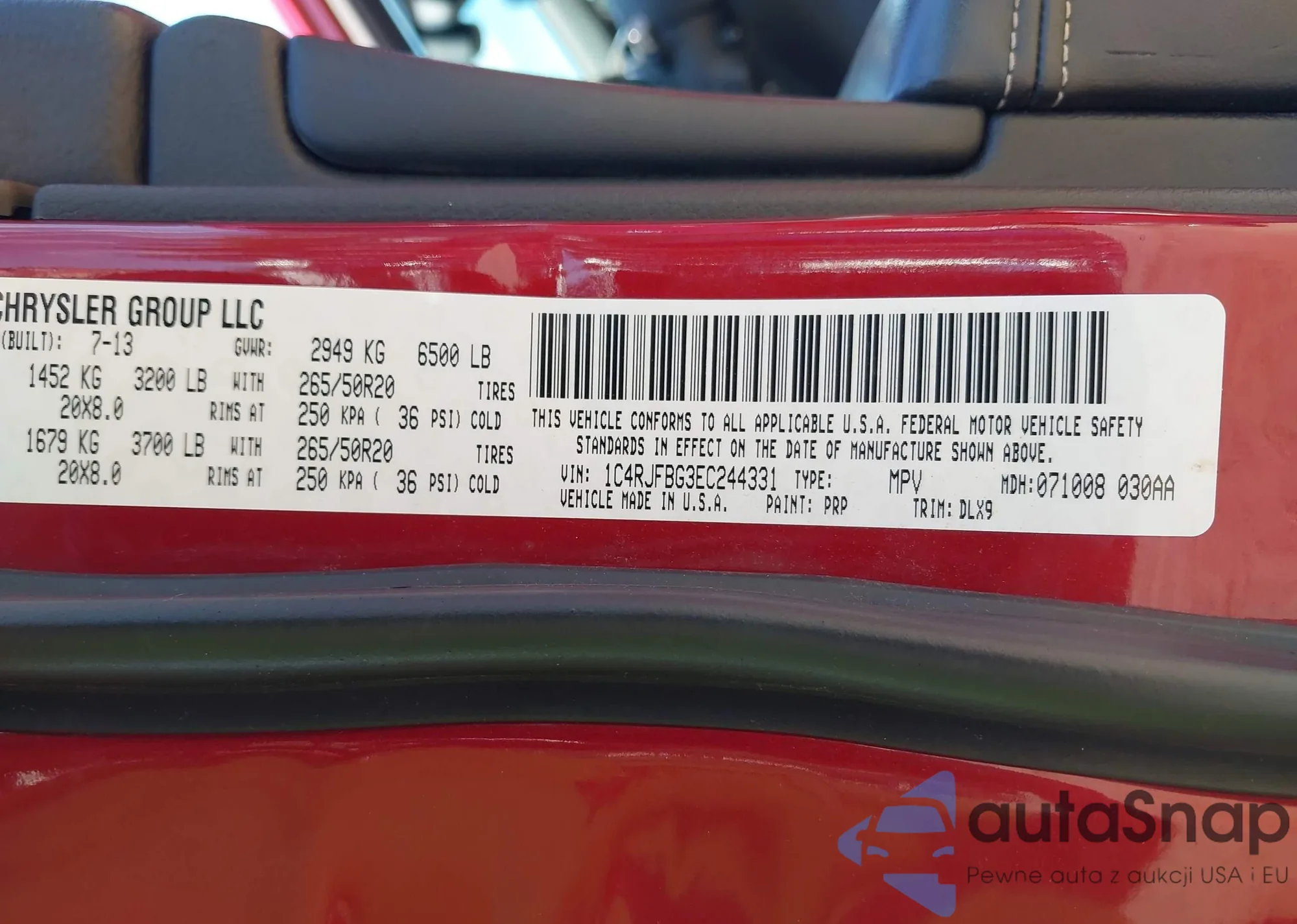 LOT: 42972692 VIN: 1C4RJFBG3EC244331