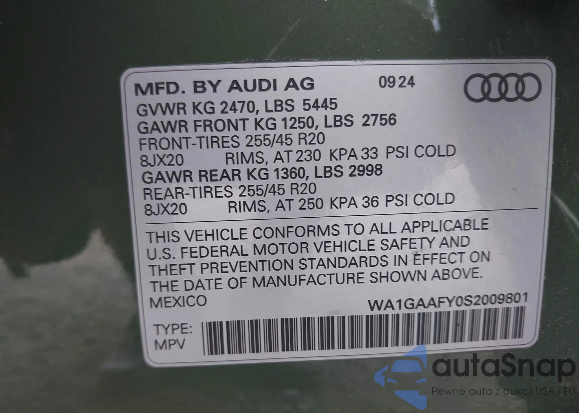 LOT: 42549958 VIN: WA1GAAFY0S2009801